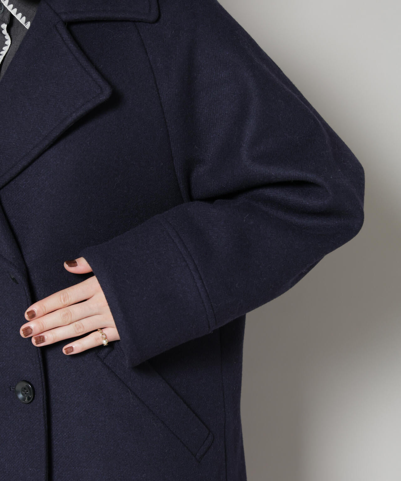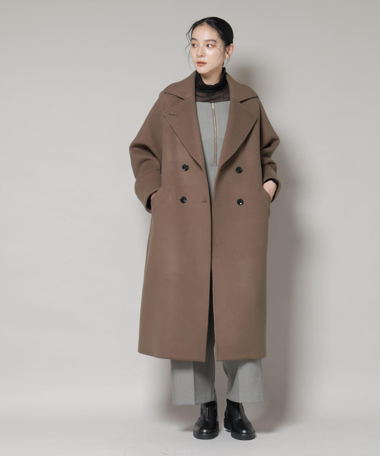 ・シルエットが安定しやすいダブルブレストのチェスターコート型
