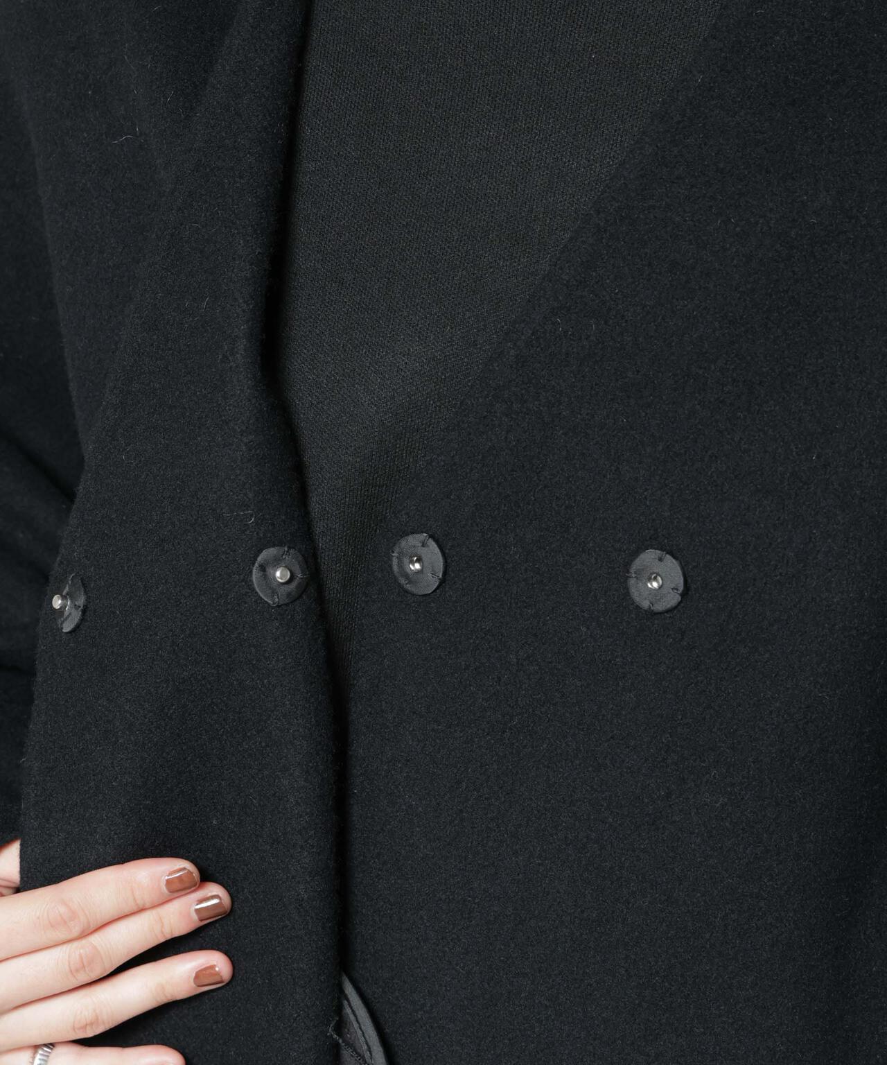 フロントはすっきりとした比翼仕立てのスナップボタン開閉