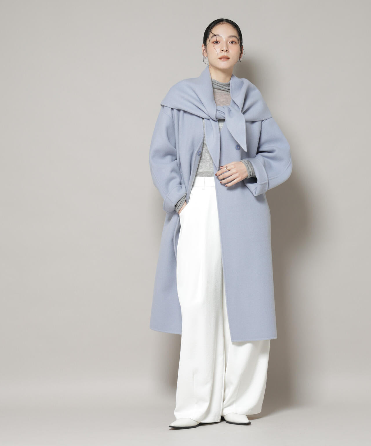 ・同素材のリバー三角ストールとセットで合わせる着こなしがおすすめ