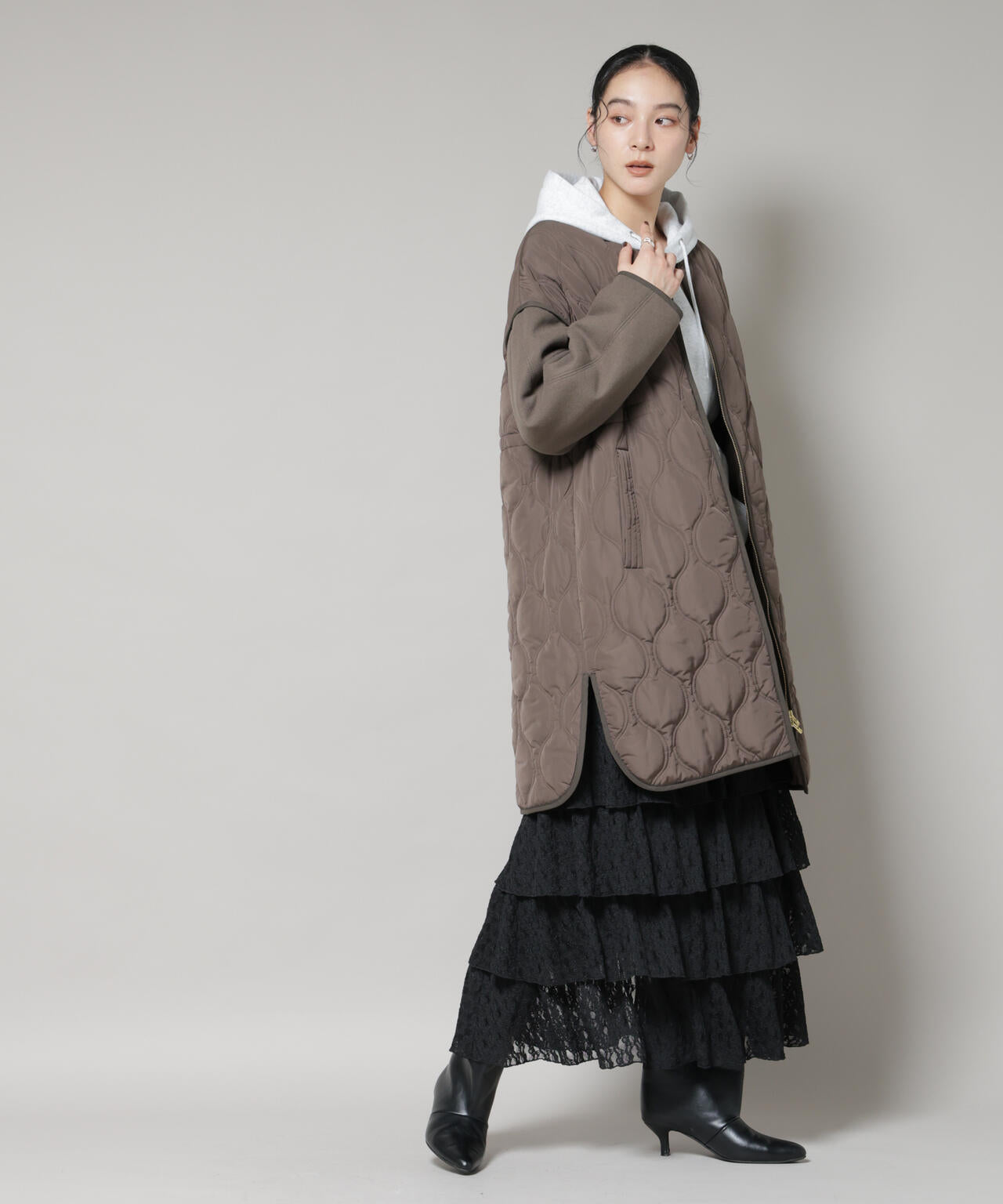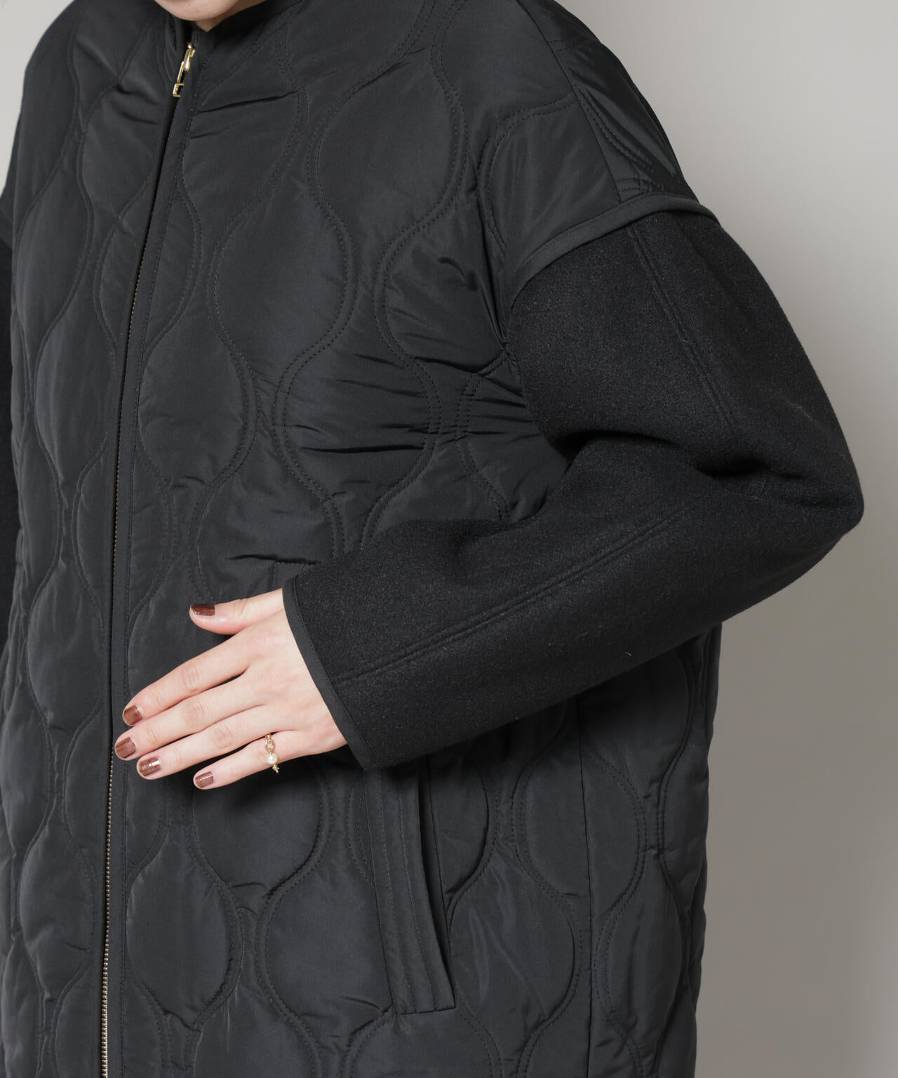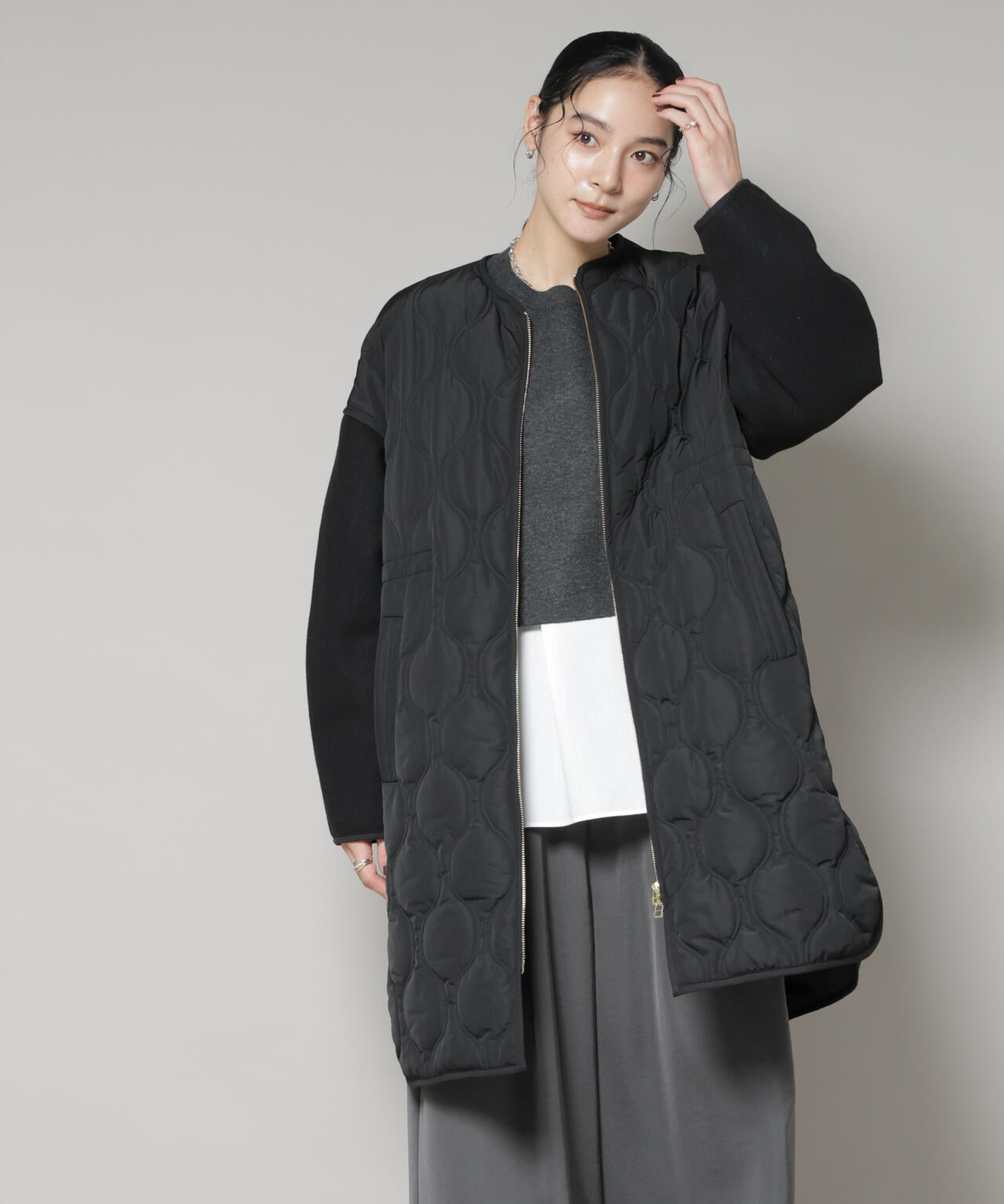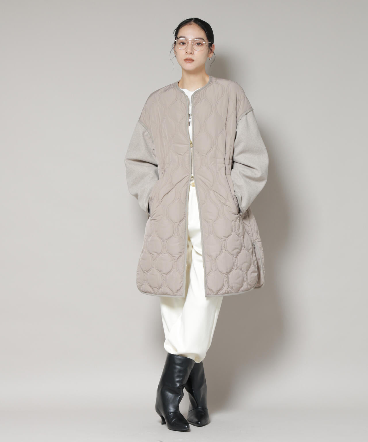 異素材コンビがポイントのカジュアル中綿キルティングコート