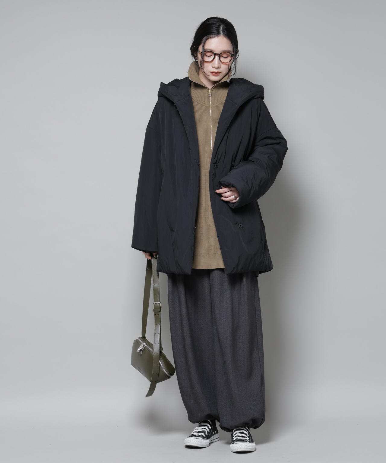 軽くて暖かい機能中綿「ETHERMALOFT(R)AEROGEL」を使用したアウターシリーズ。防寒性とファッション性を兼ね備えた着心地で寒い冬でも快適に過ごせるアイテム。コロンとした丸みのあるエッグフォルムが女性らしい雰囲気のある一着です。