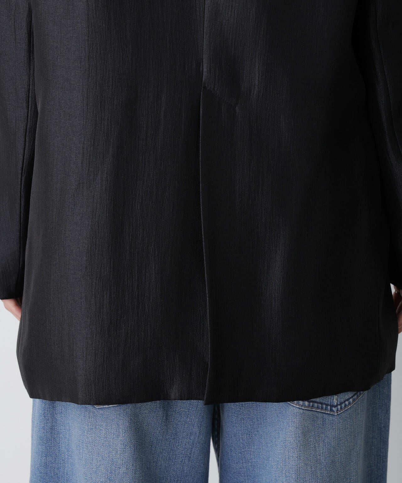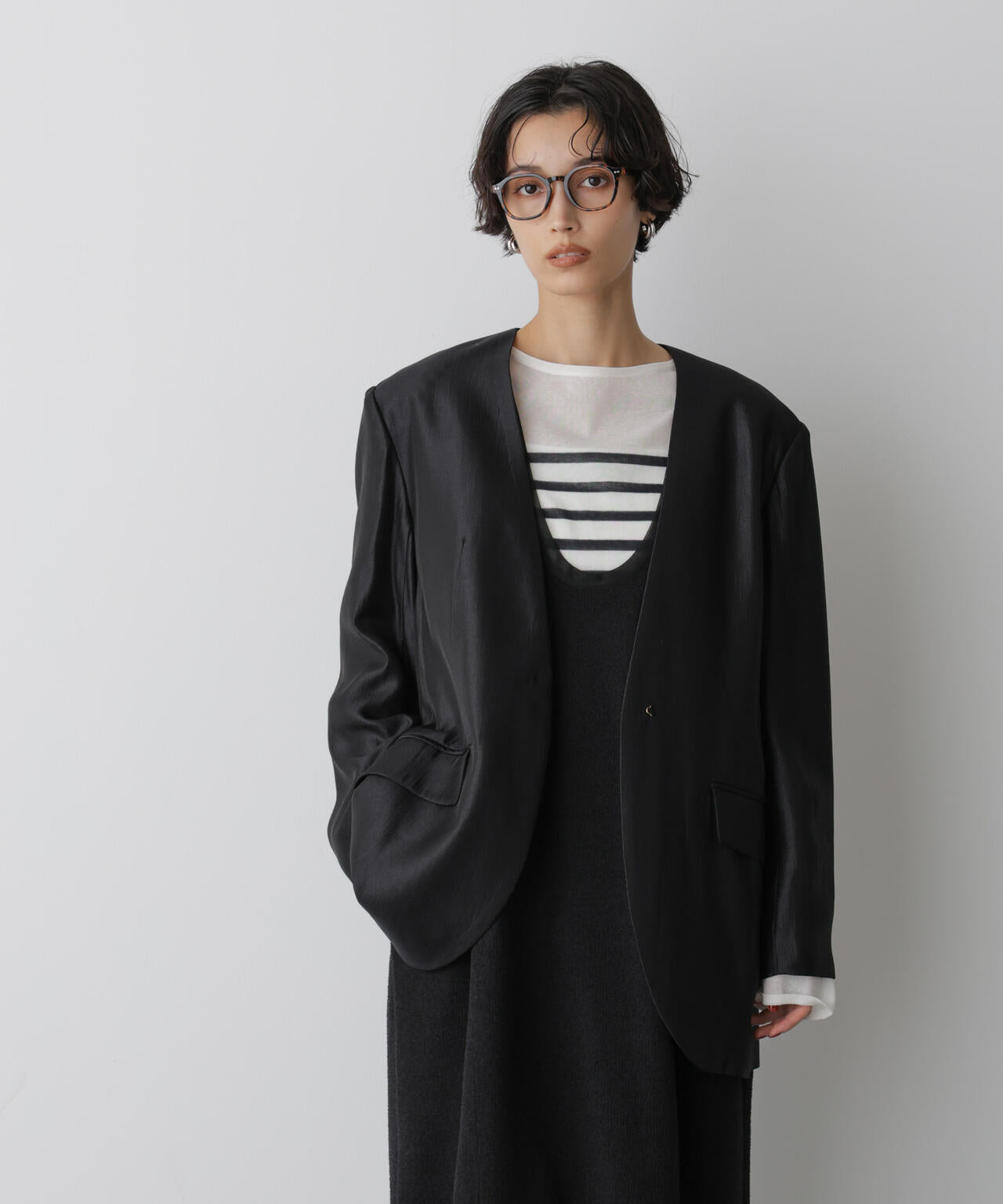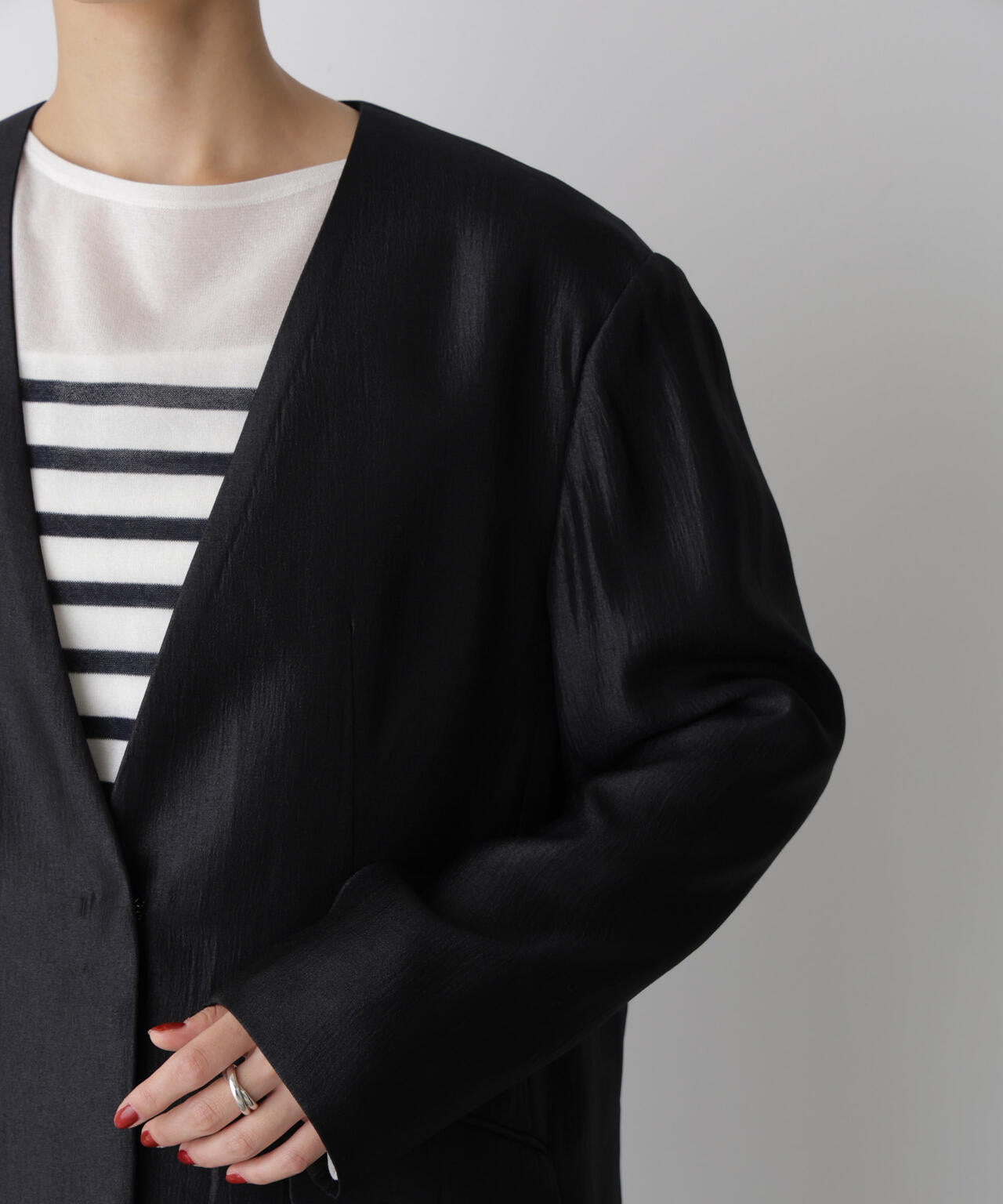 今季ローンチした新レーベル「Stevelour(スティーブロア)」のノーカラージャケット。上品な光沢感とスタイリッシュでミニマルなルックスがモードな雰囲気を演出。シャツのような感覚で着用できるサラッとした素材感で、季節を問わずロングシーズン着回せる万能アイテムです。