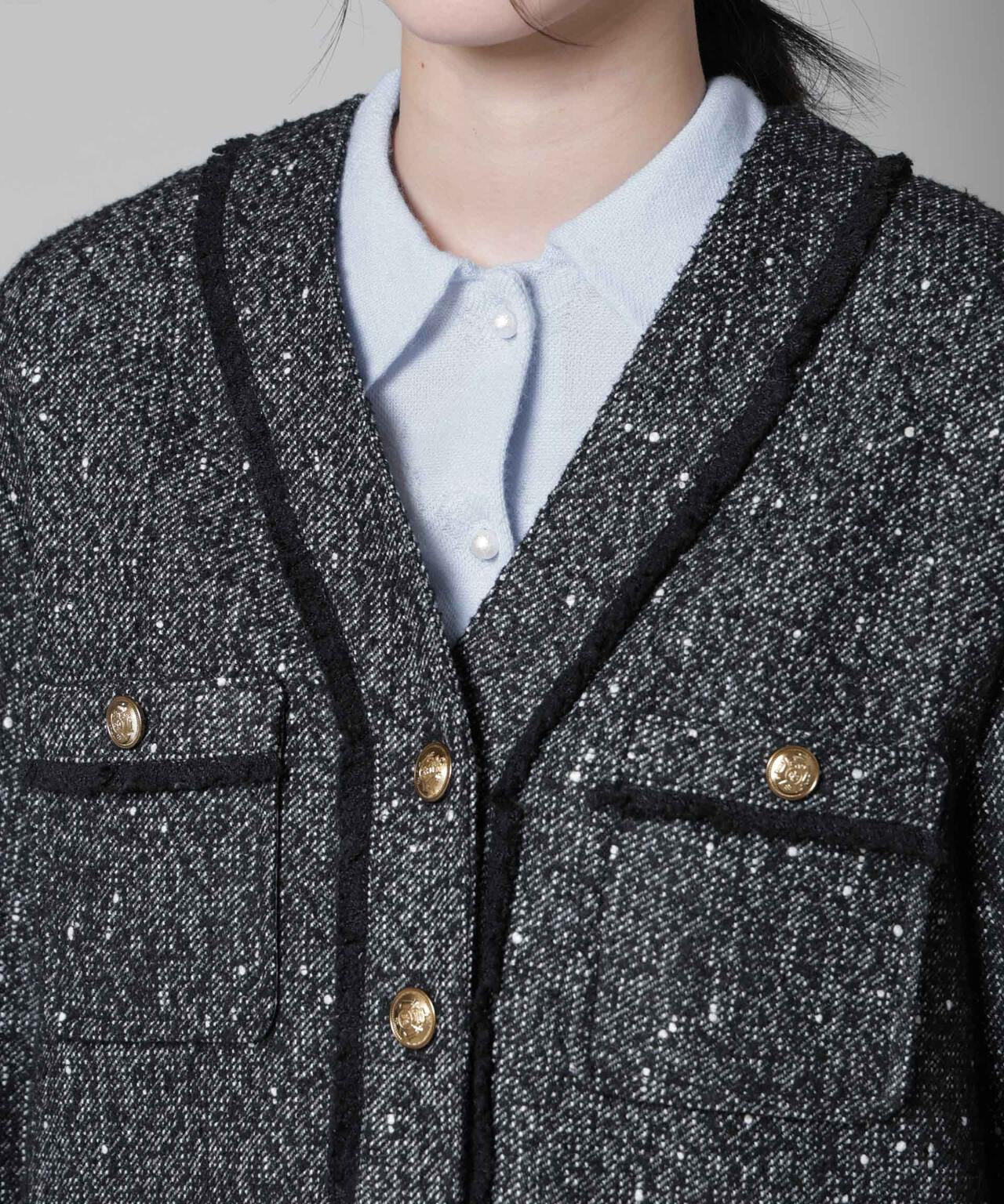 秋冬のウォーミーな雰囲気を演出するネップツイード生地を使用したノーカラージャケット