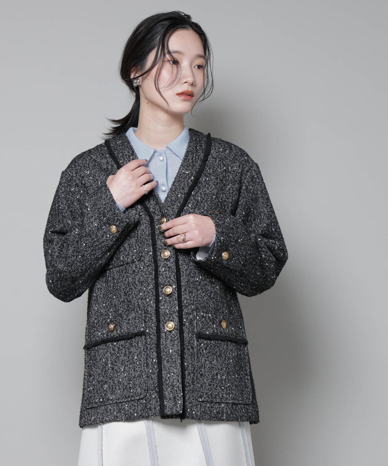 ・今っぽさとヴィンテージ感を兼ね備えたツイードジャケット