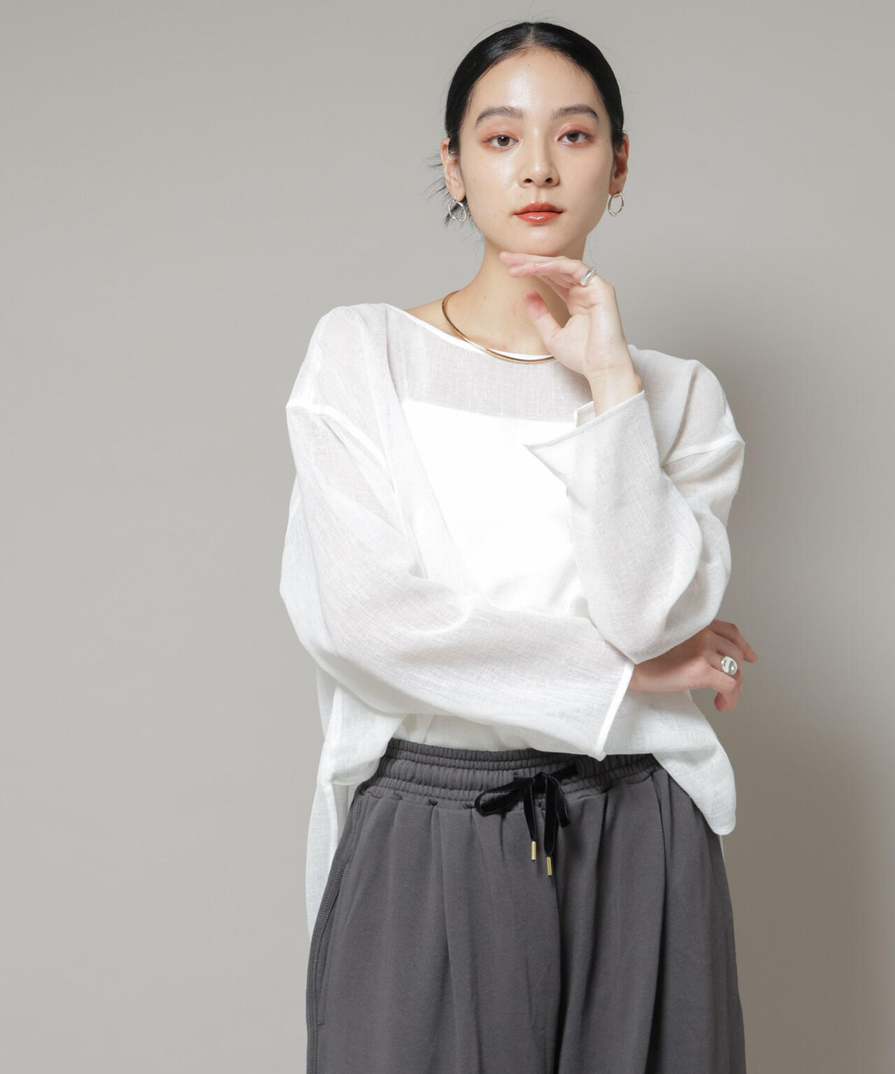 ゆるっとしたオーバーサイズが大人っぽい抜け感のあるメッシュブラウス
