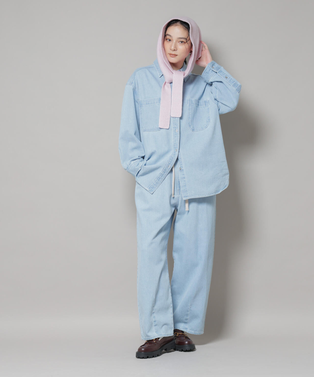 膨らみのある柔らかいデニム生地で仕立てたワイドシャツ。メンズのようなオーバーサイズで、袖は折ってたくし上げるなど、ラフなスタイリングでの着こなしがおすすめです。