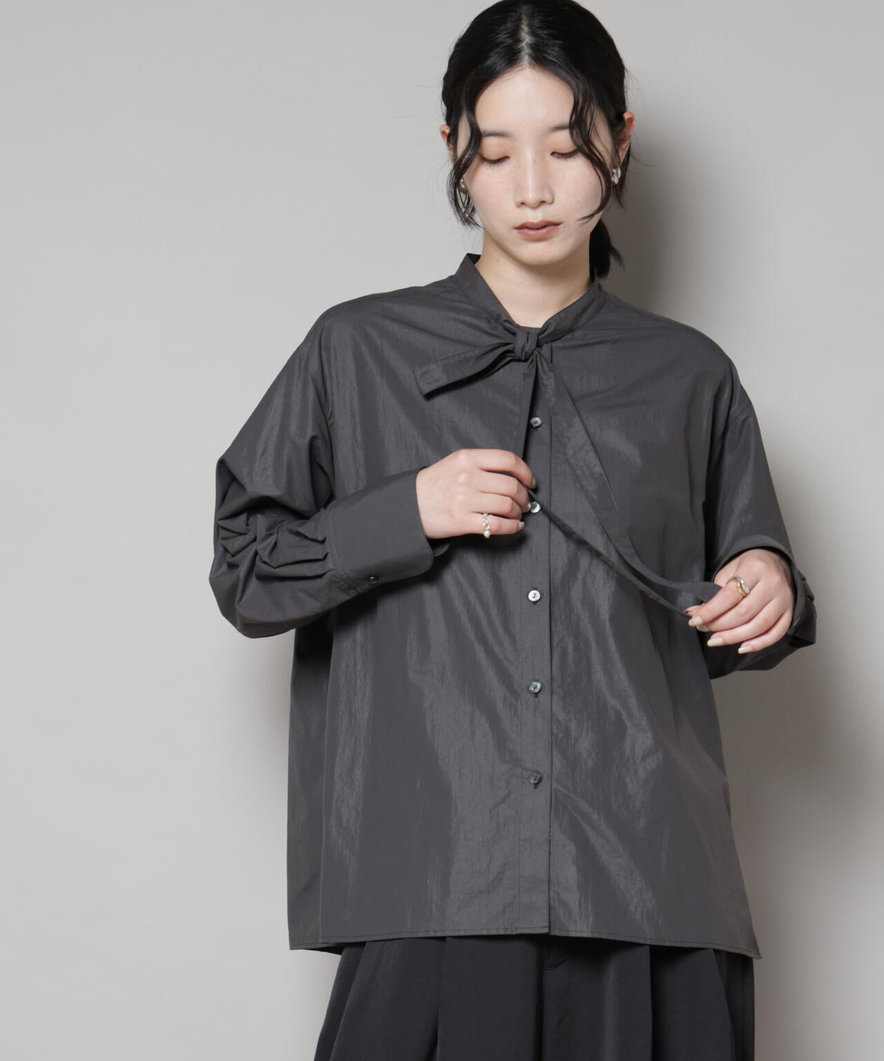 チンツ加工による艶とハリ感で存在感が際立つボウタイシャツ