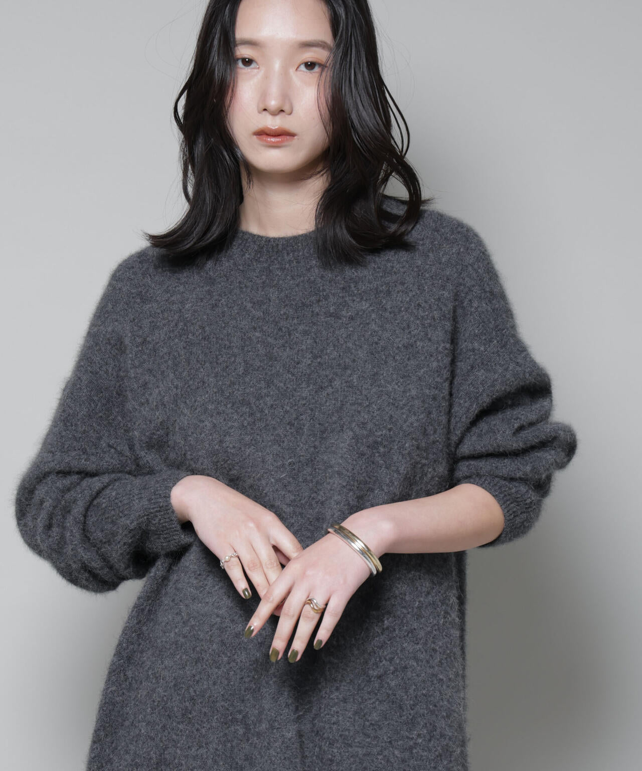 毎年人気の上質なフォックスウールを使用したクルーネックニットプルオーバー。長めの袖リブとふんわりとした袖とのバランスが大人可愛い雰囲気の一枚です。