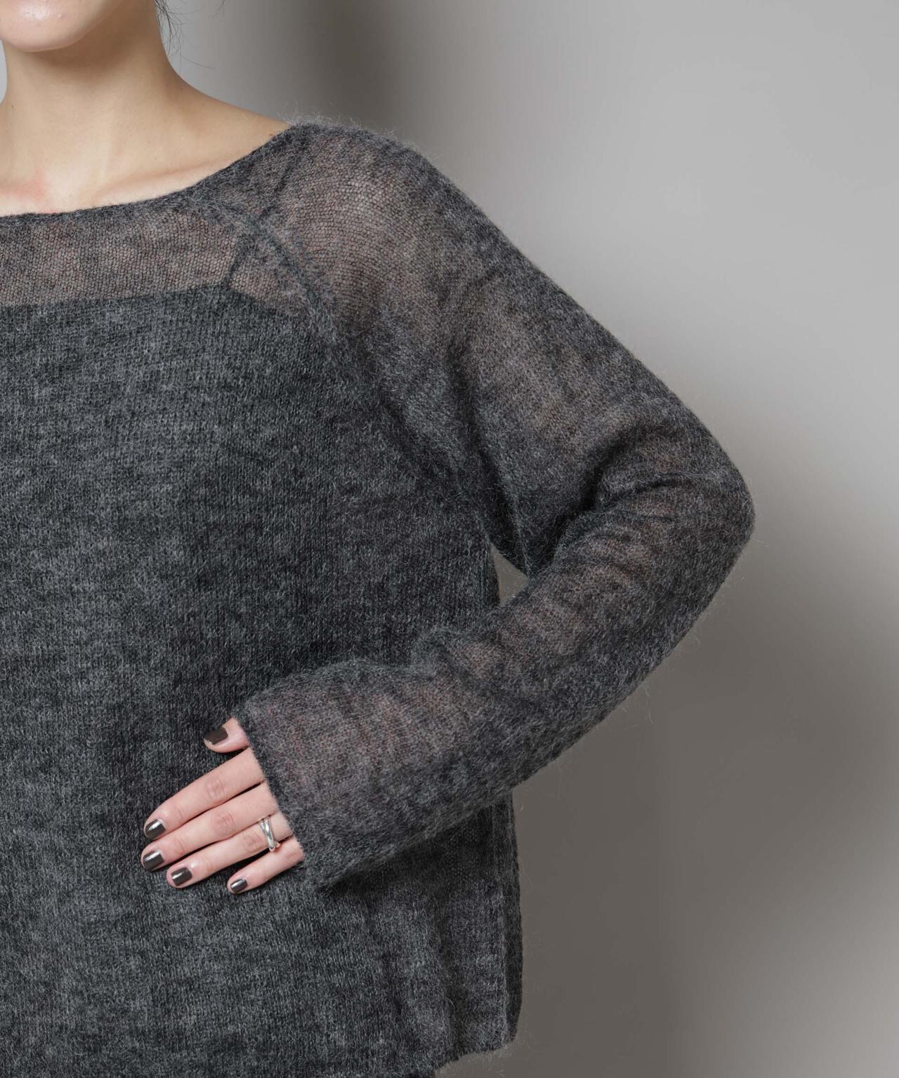 モヘヤ混のふわっとした糸を5ゲージで甘く繊細に編んだ一着