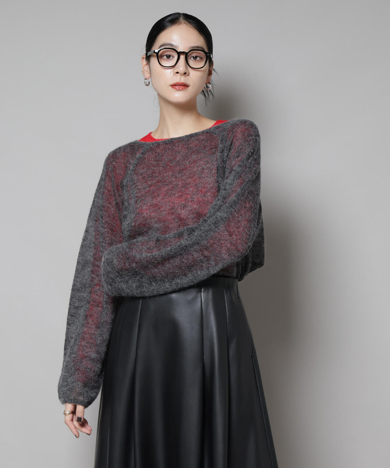 秋らしいモヘヤ混の糸で仕立てたトレンド感あるシアーニット。透け感を生かして夏はタンクトップやキャミソール、秋は薄手のカットソーと合わせたりとレイヤードを楽しめるアイテムです。