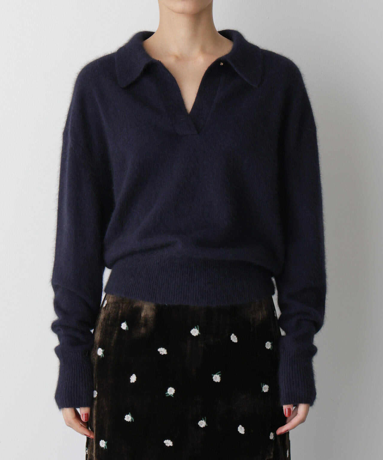 ・抜け感を演出し顔まわりにこなれ感をプラスしてくれるスキッパーポロ衿デザイン