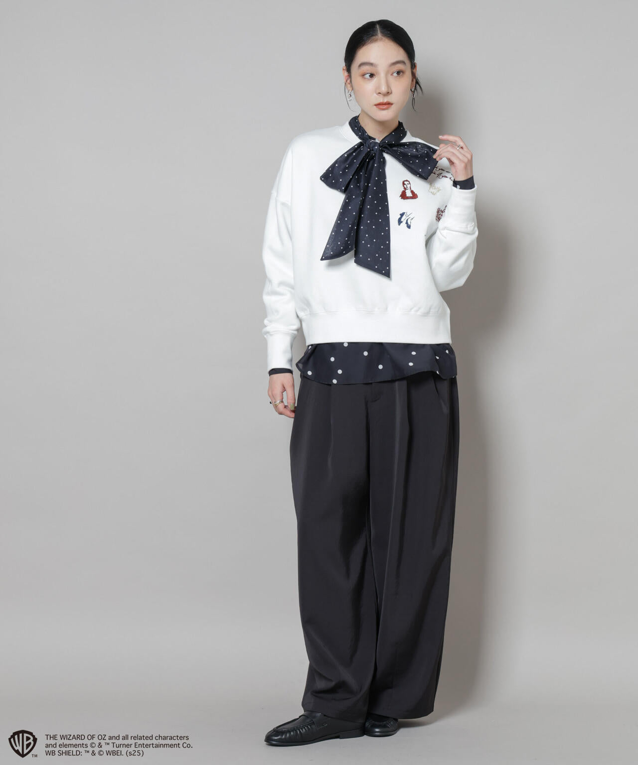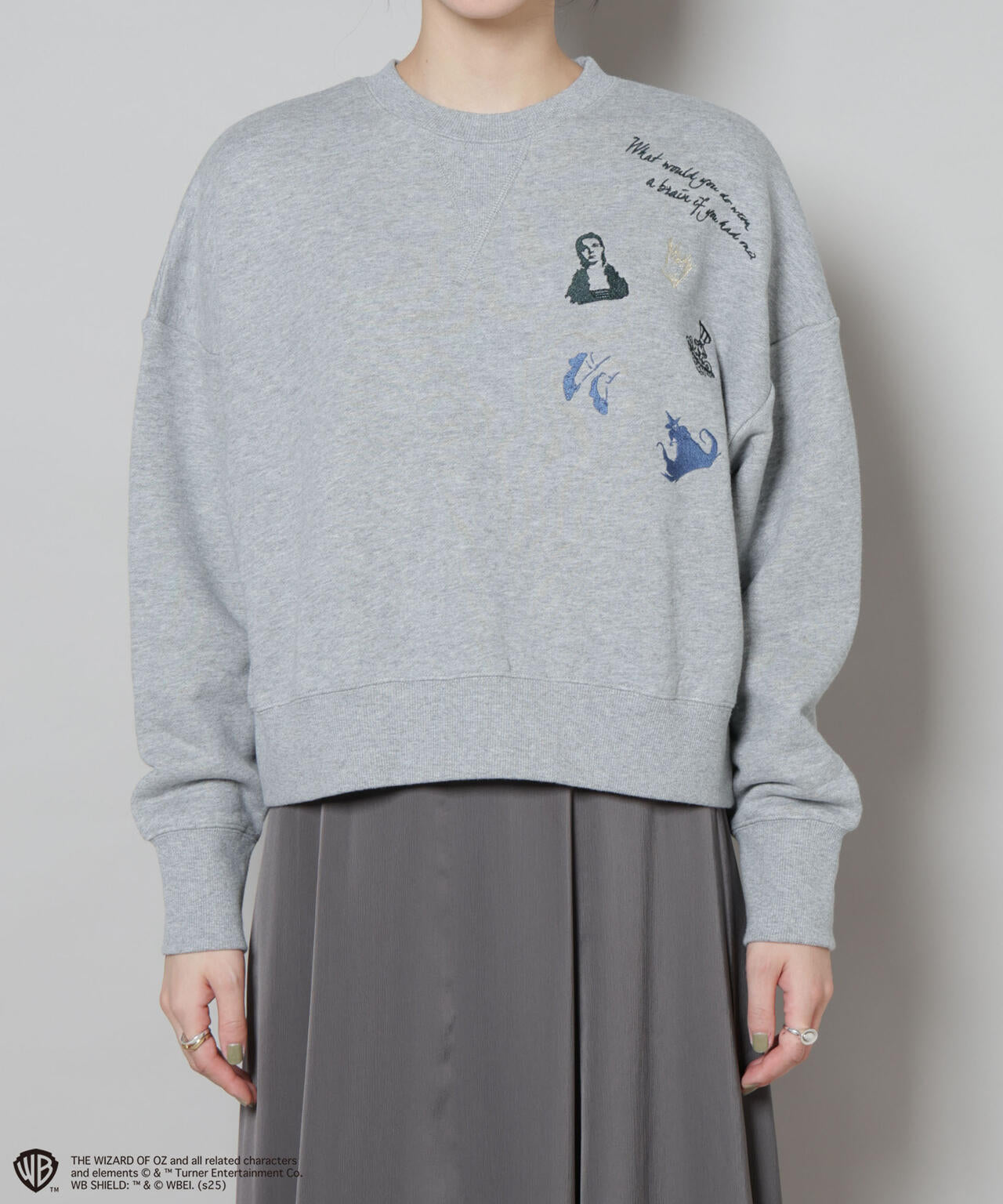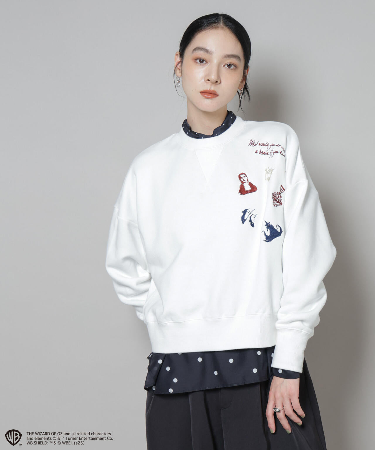 クラシックな名作『オズの魔法使い』の世界を、モダンで遊び心ある刺繍に落とし込んだスウェットトップス。ドロシーとカカシの出会いの象徴でもあるセリフ「What would you do with a brain if you had one? (もし脳みそがあったら、何をする?) 」を英字でさりげなく刺繍。物語を身にまとうような、特別感を堪能できる1着です。