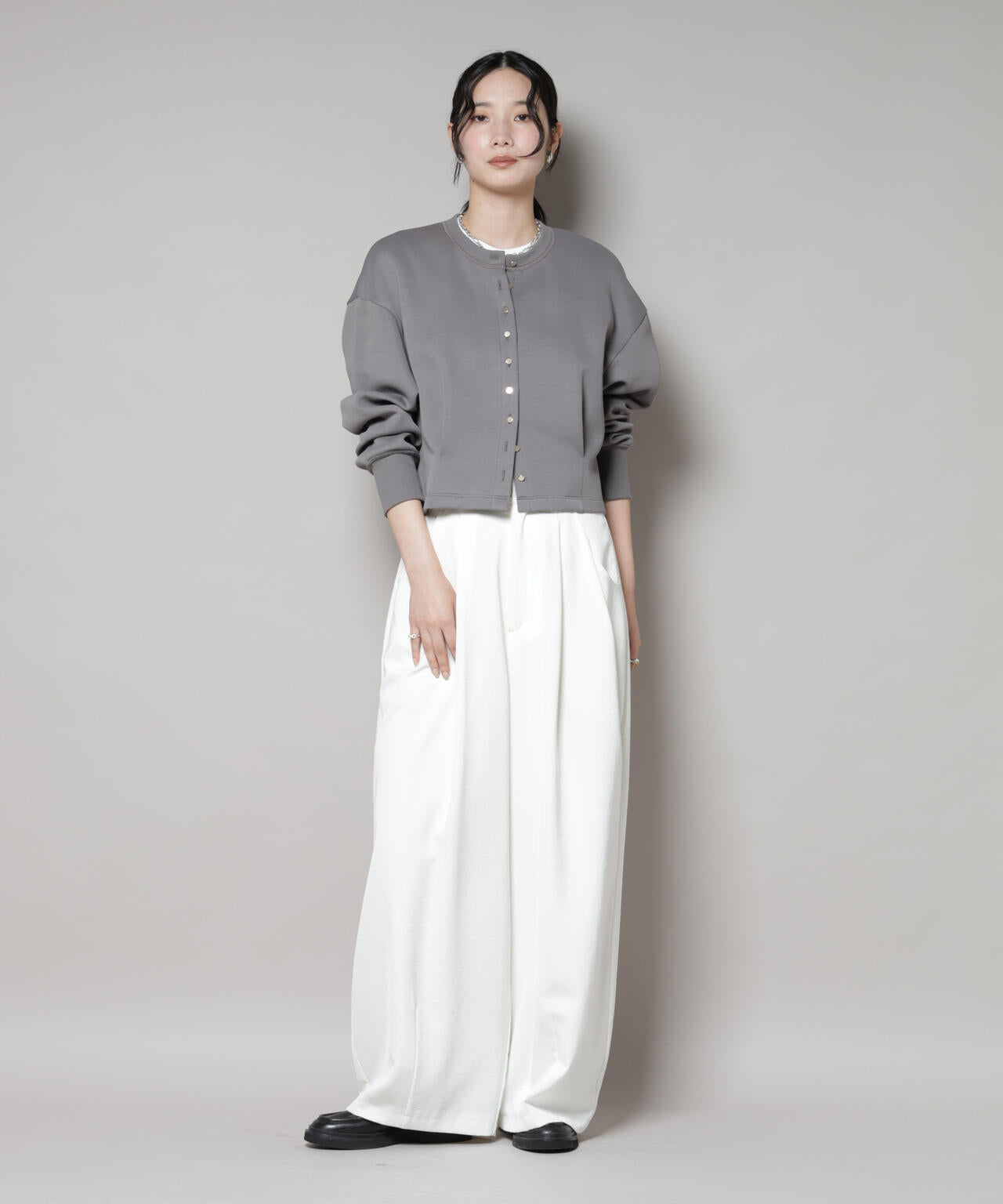 ・厚みがありながらも重さを感じにくく、シルエットを綺麗にキープしてくれる、機能性と着やすさを両立した素材