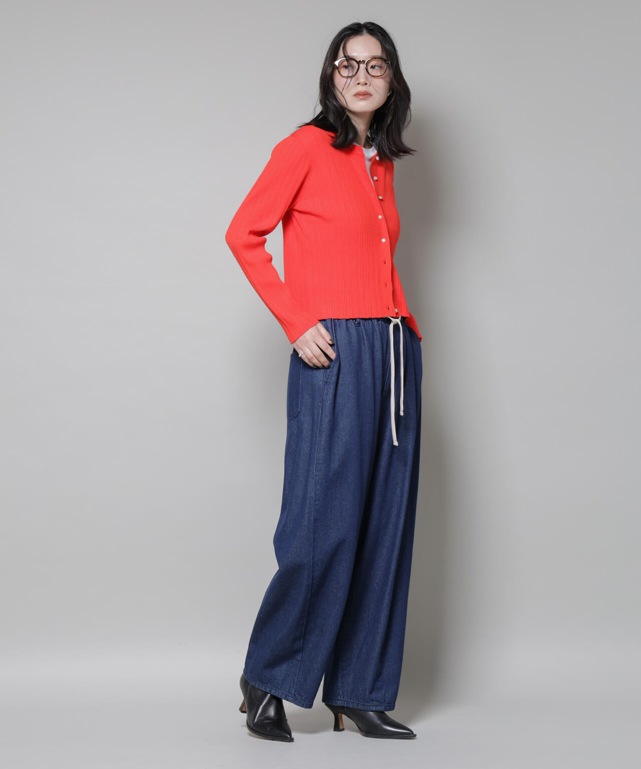 膨らみのある柔らかいデニム生地で仕立てたドロストパンツ