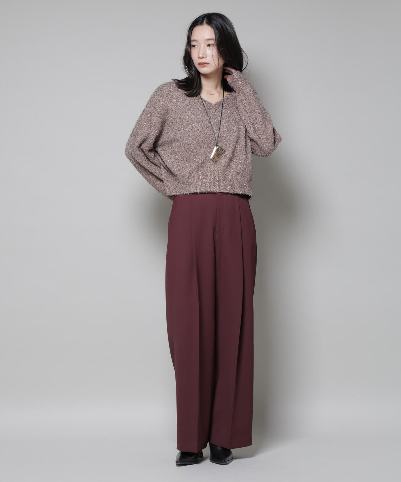 すっきりとした美脚ラインが特徴のワイドパンツ