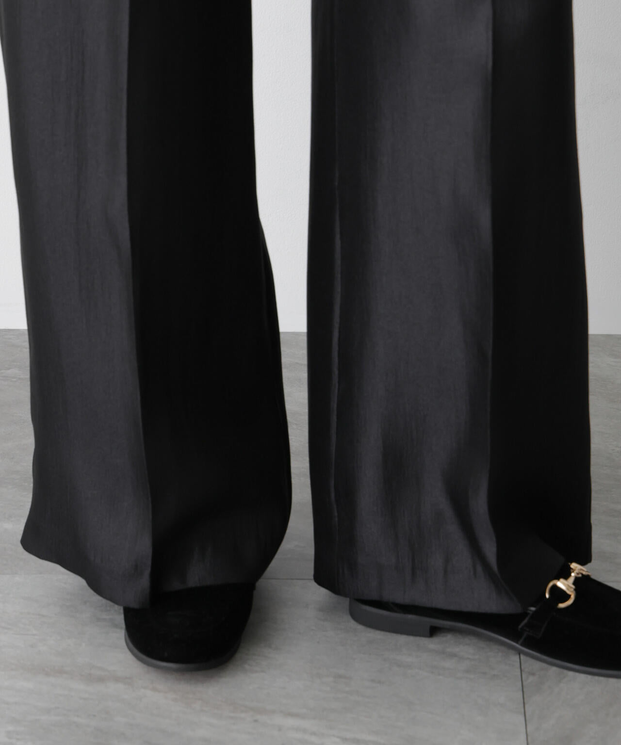 裾に向かって広がる細めのワイドシルエットで、上品さを残したデザイン