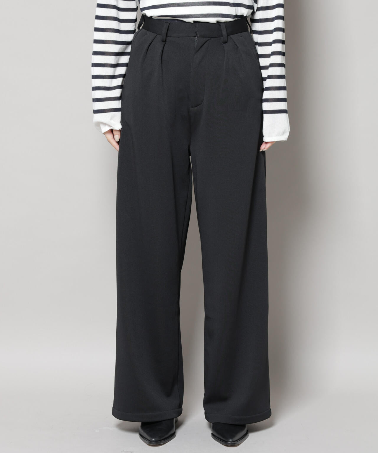 ・身体のラインを拾いにくいワンタック入りのワイドシルエット