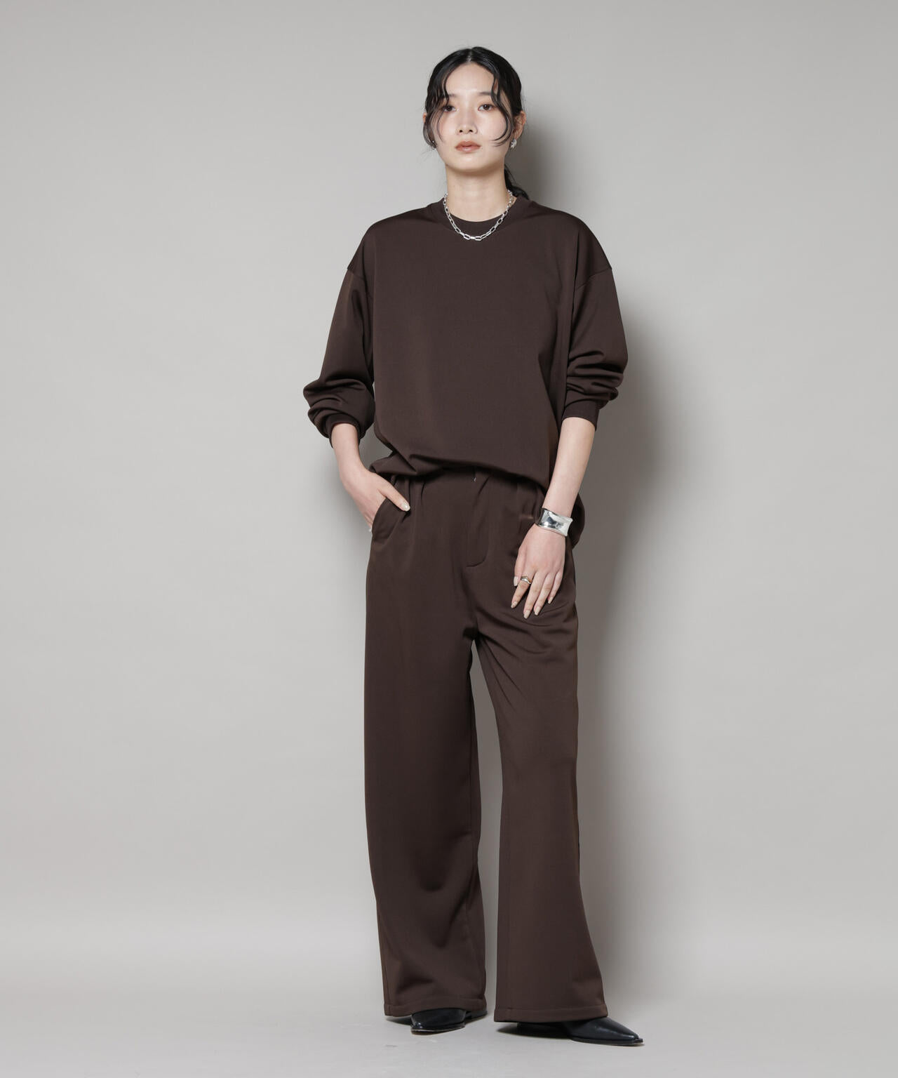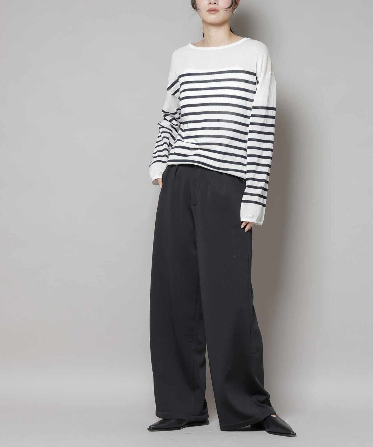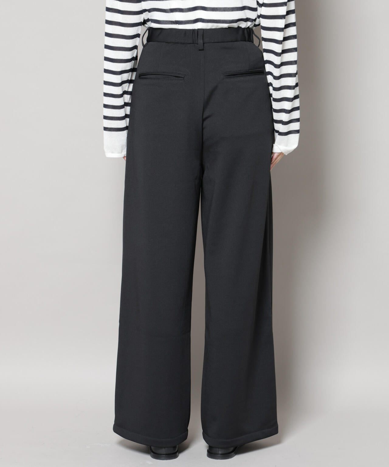 身体のラインを拾いにくいワンタック入りのワイドシルエット