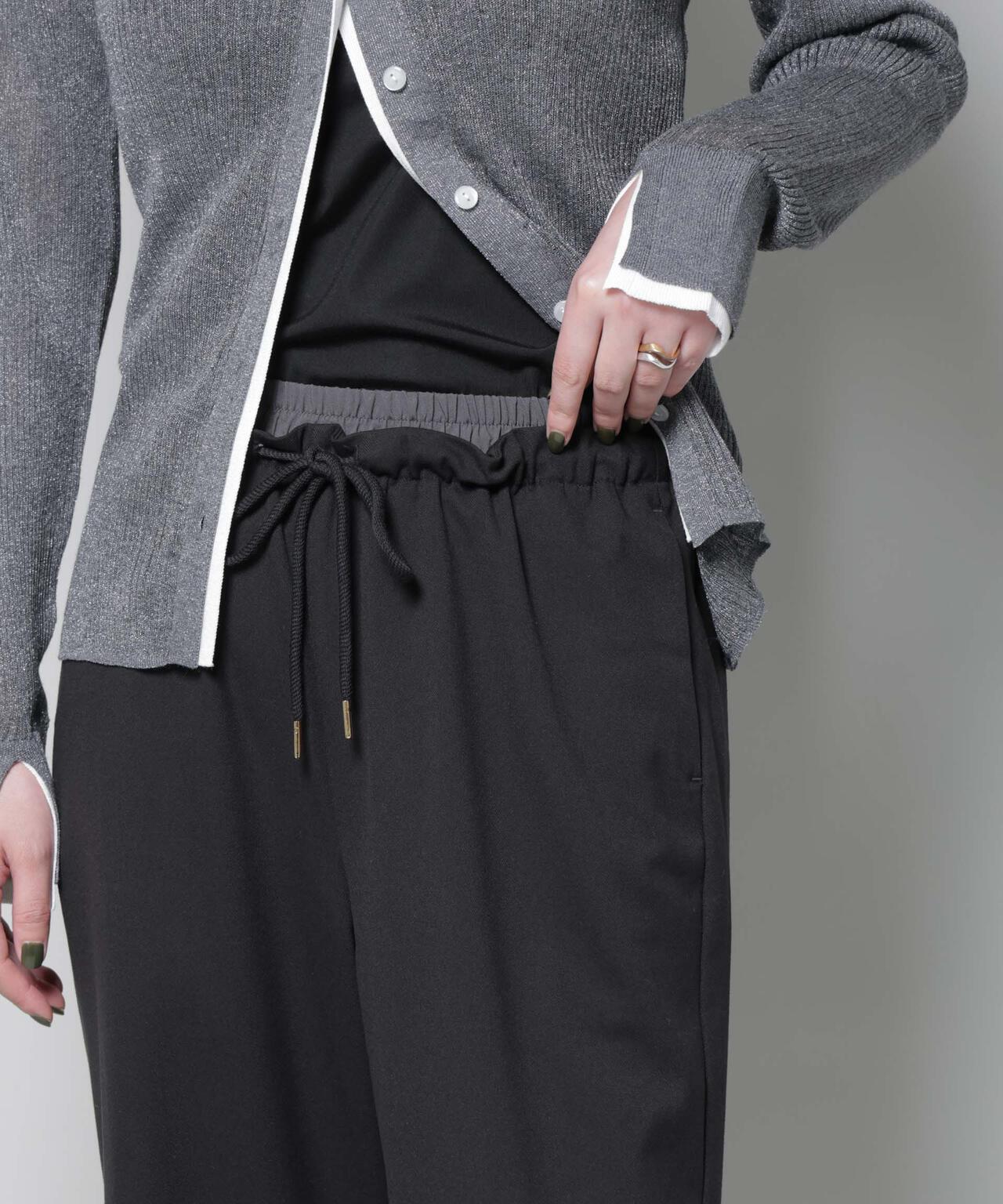 デイリーを快適に過ごせる機能性が嬉しいイージーパンツ。マシンウォッシャブル、吸湿発熱、ナチュラルストレッチ等でストレスフリーな着心地を提供。シンプルながらポイントになる配色のダブルウエストデザインで、着回しの幅が広がるバランス感も魅力です。