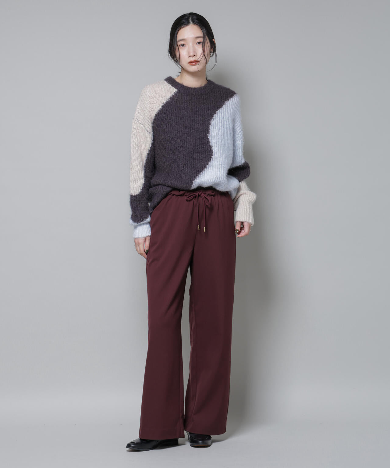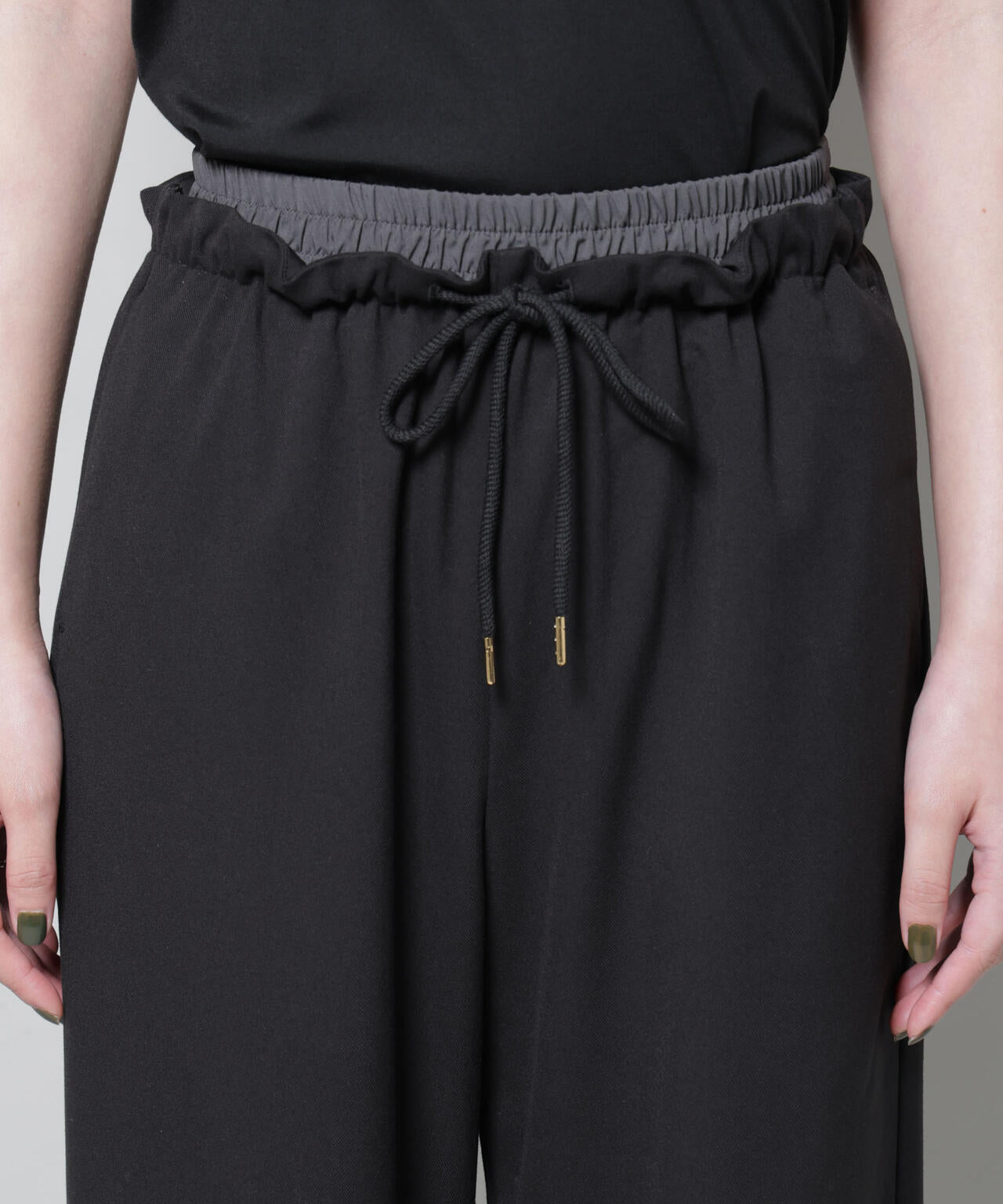 ・レイヤードライクな配色ダブルウエストデザインが特徴のロングパンツ