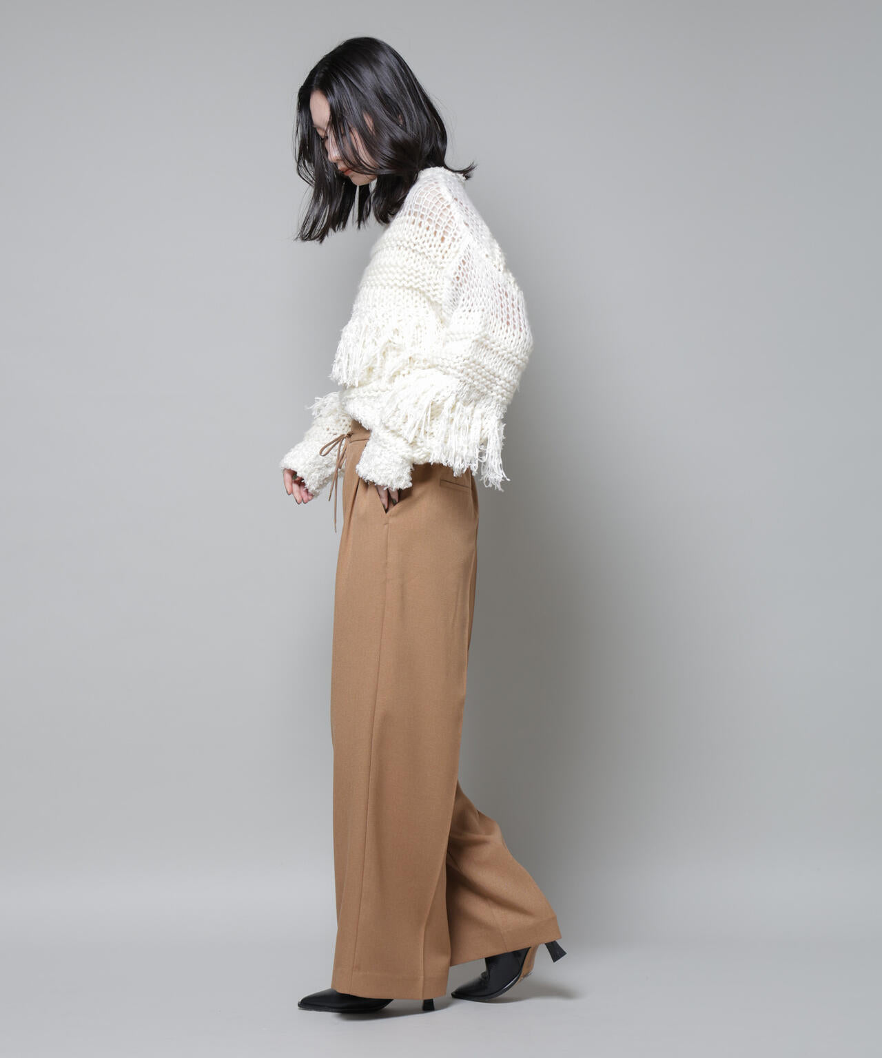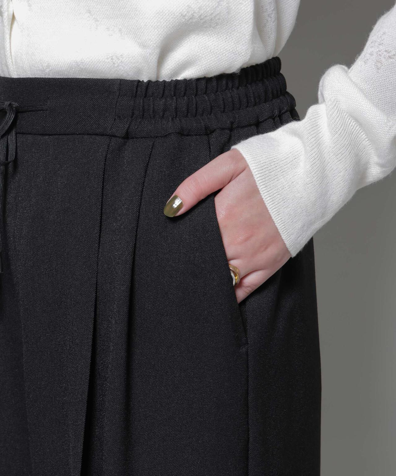 ・ピンタックで縦ラインを入れたきれいめシルエットのワイドパンツ