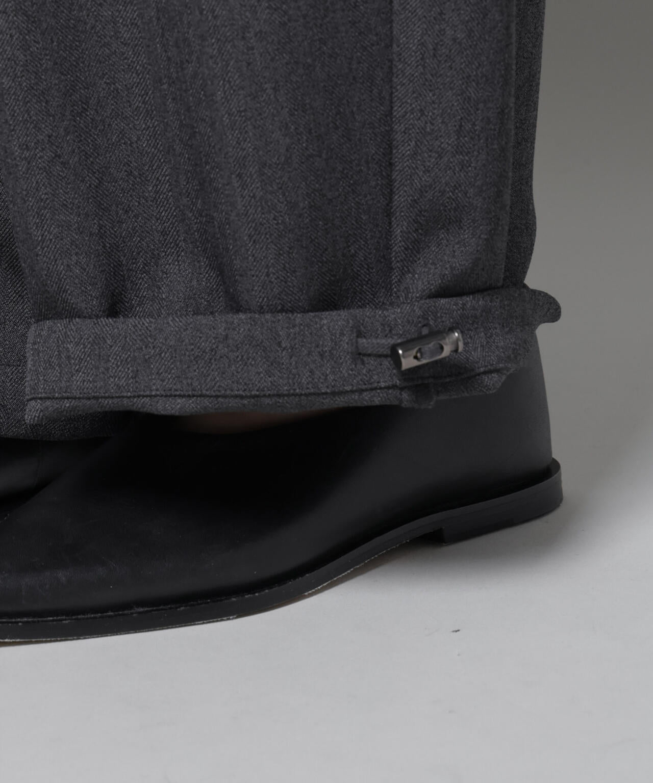 ツイーディーなへリンボン素材で仕立てたドロストワイドパンツ