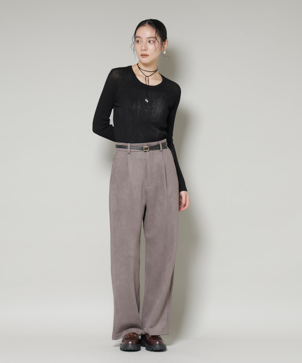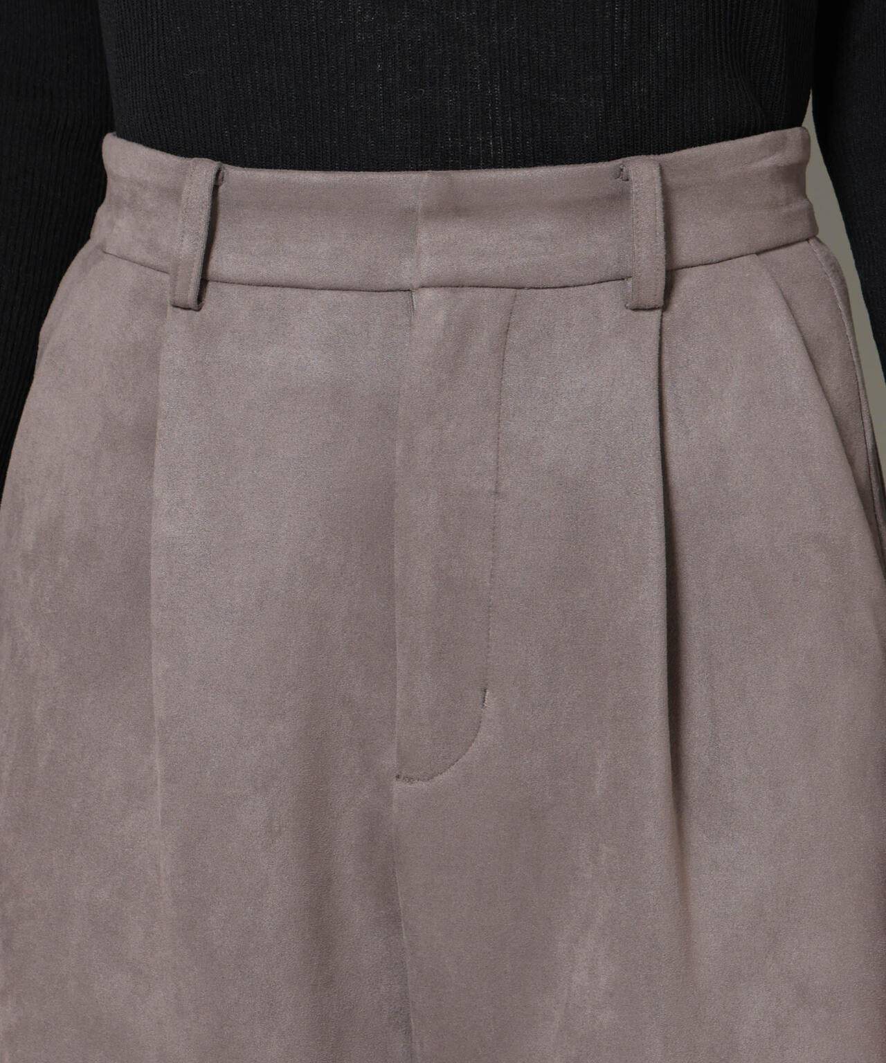 トレンド感あるフェイクスエードの柔らかな質感を生かしたタックパンツ