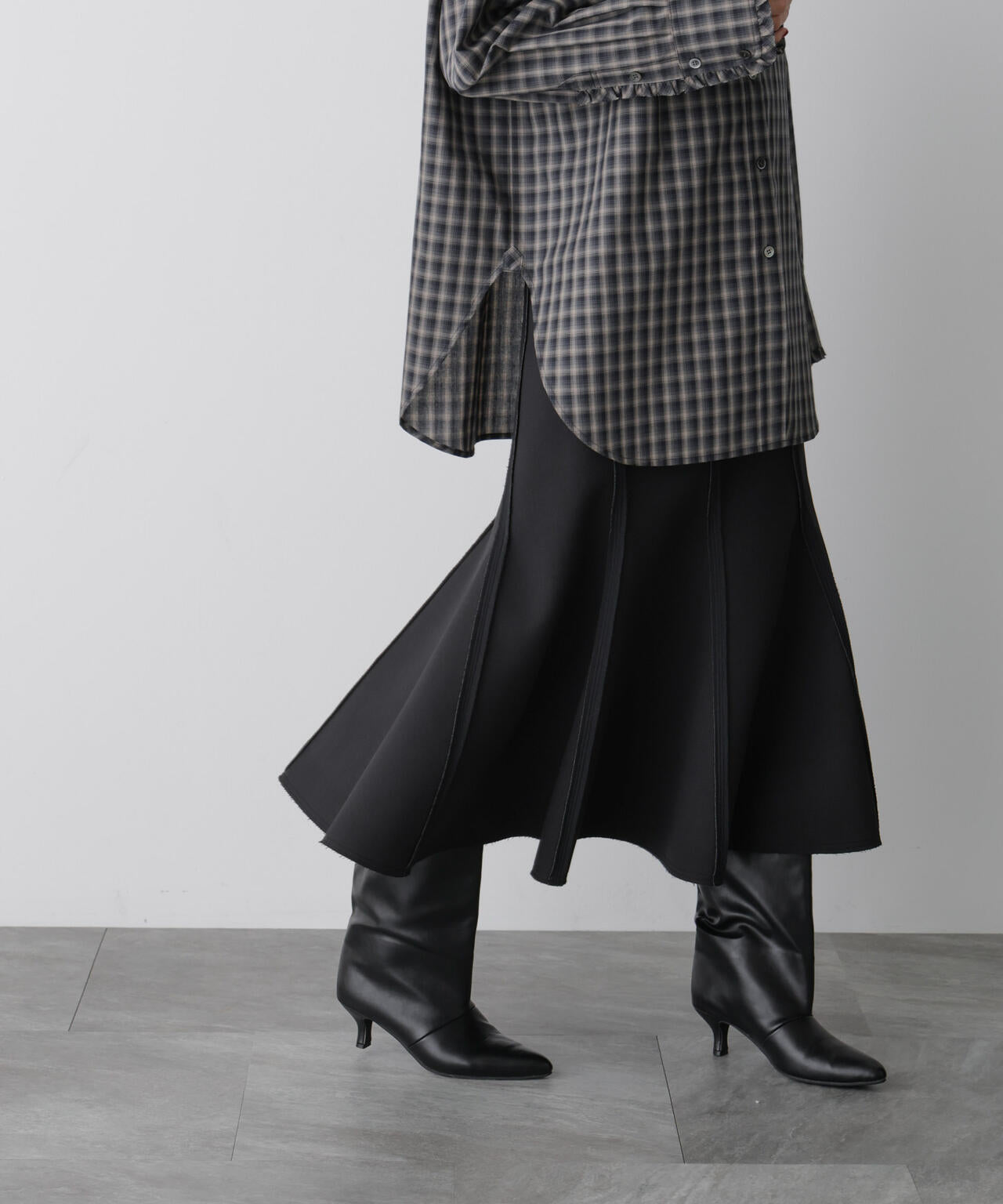 今季ローンチした新レーベル「Stevelour(スティーブロア)」のスカート。ブーツ合わせがしやすいミドル丈も、トレンド感のある着こなしを叶えるポイントです。