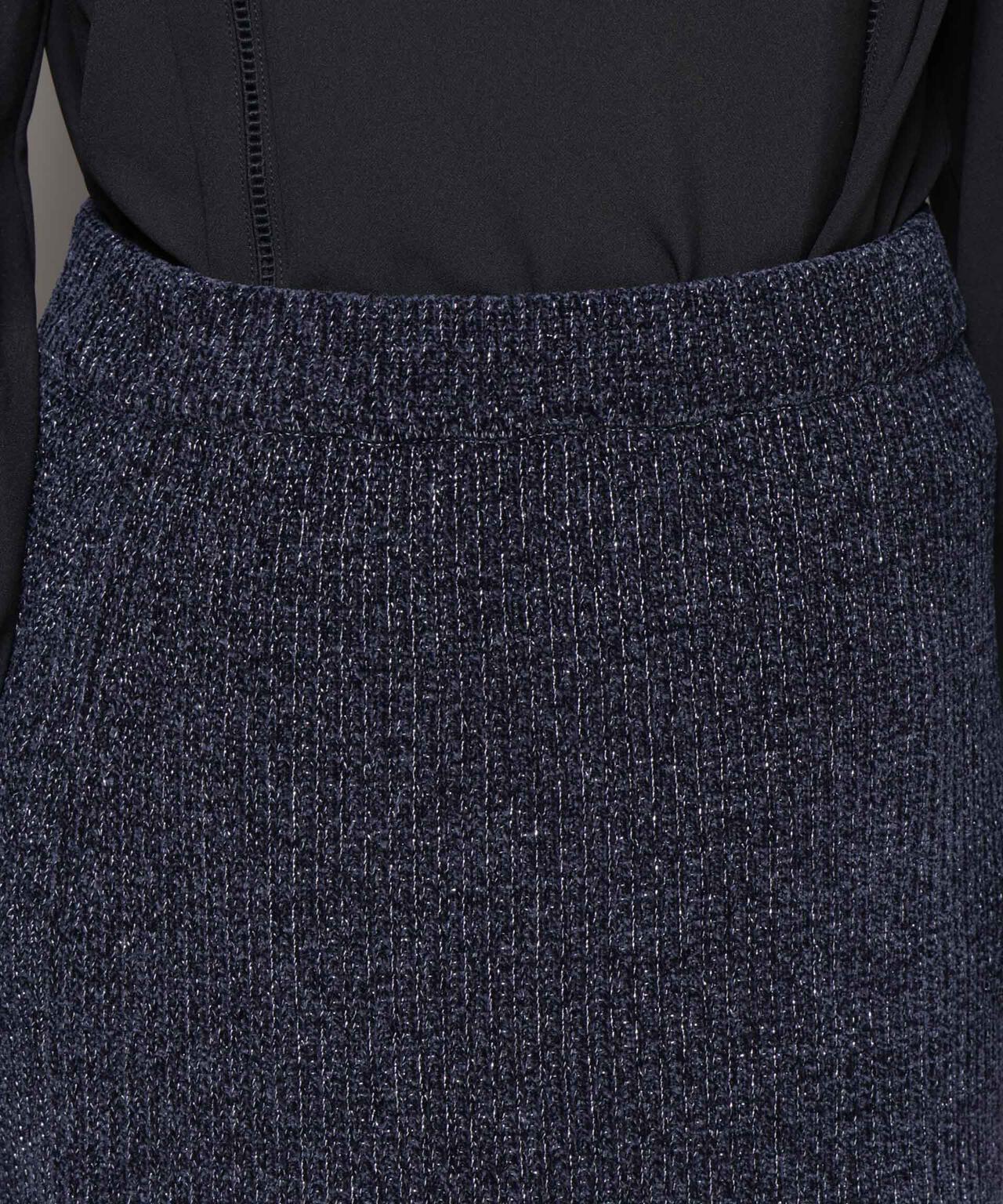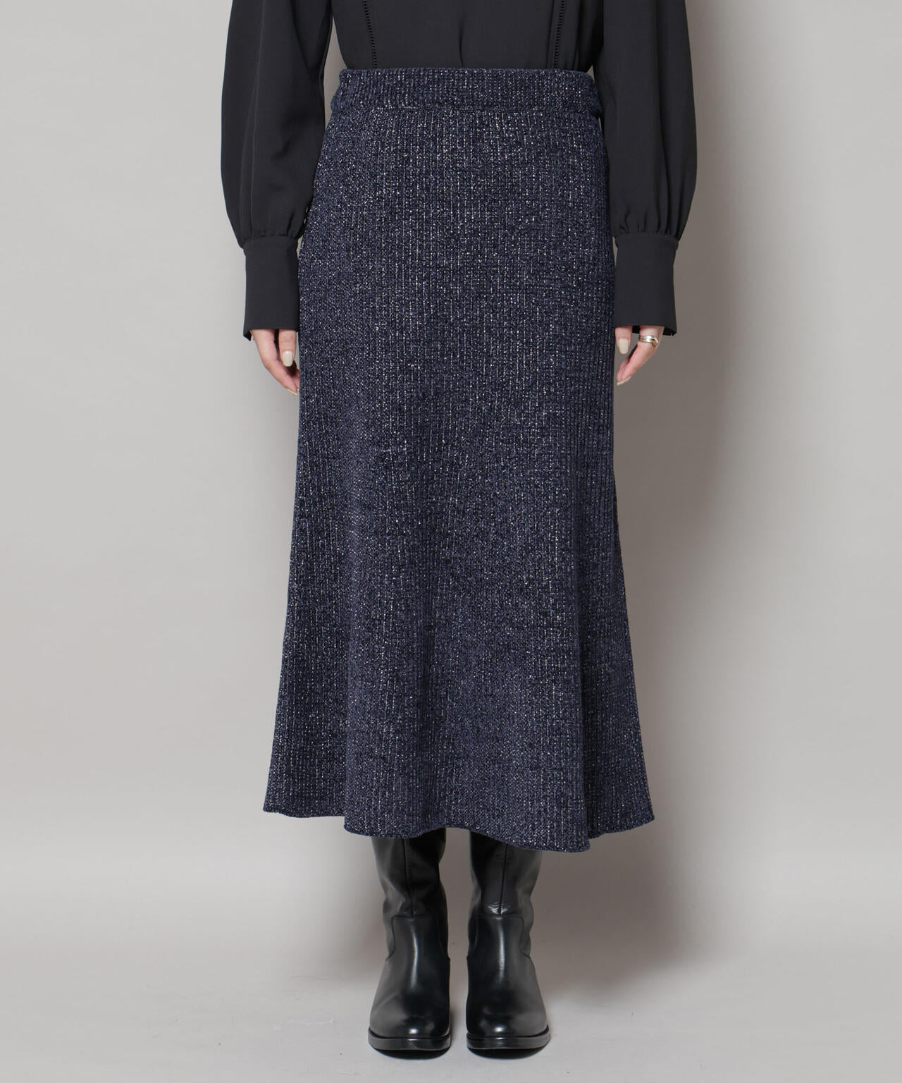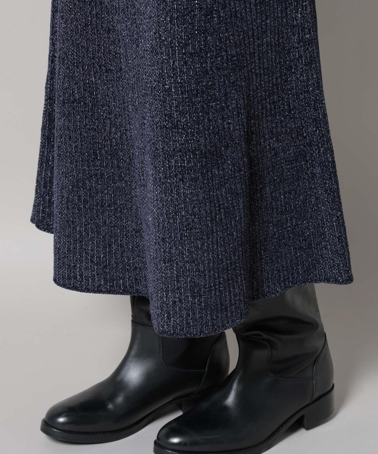 秋冬らしさと華やかな女性らしさを纏える、ラメモール素材のニットスカート