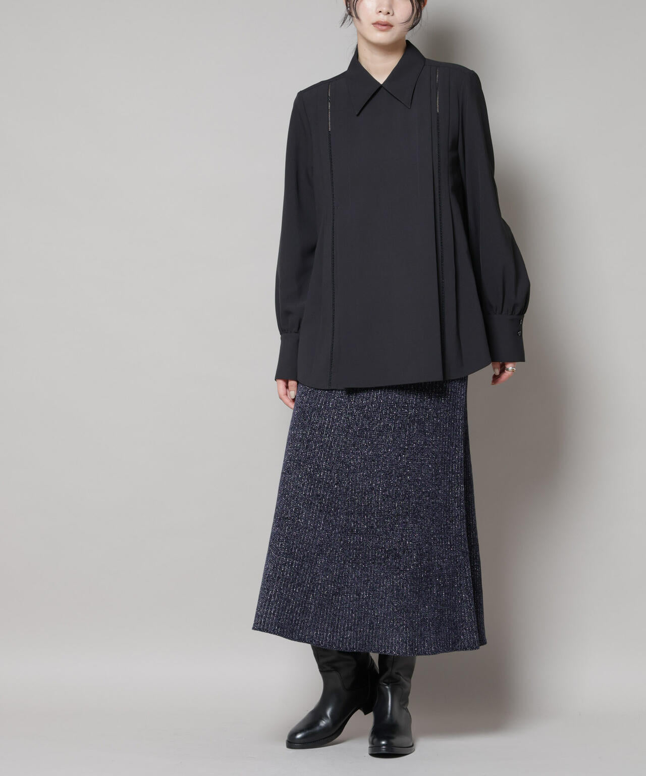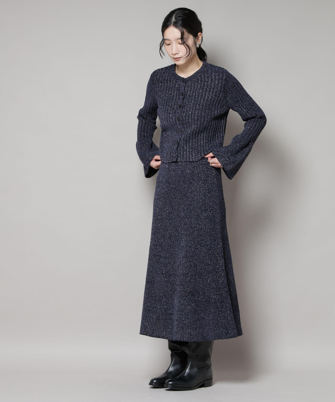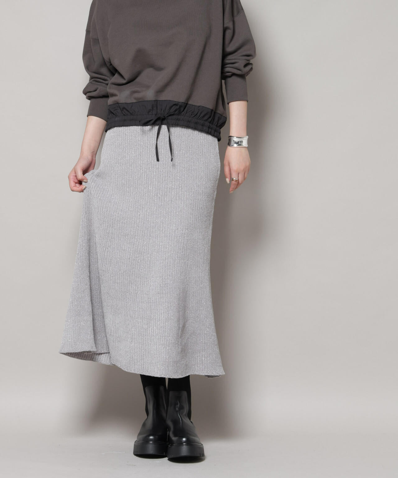 秋冬らしさと華やかな女性らしさを纏える、ラメモール素材のニットスカート