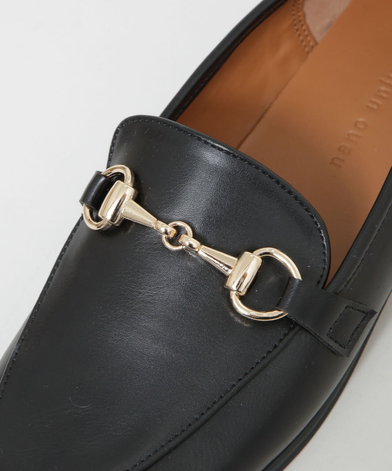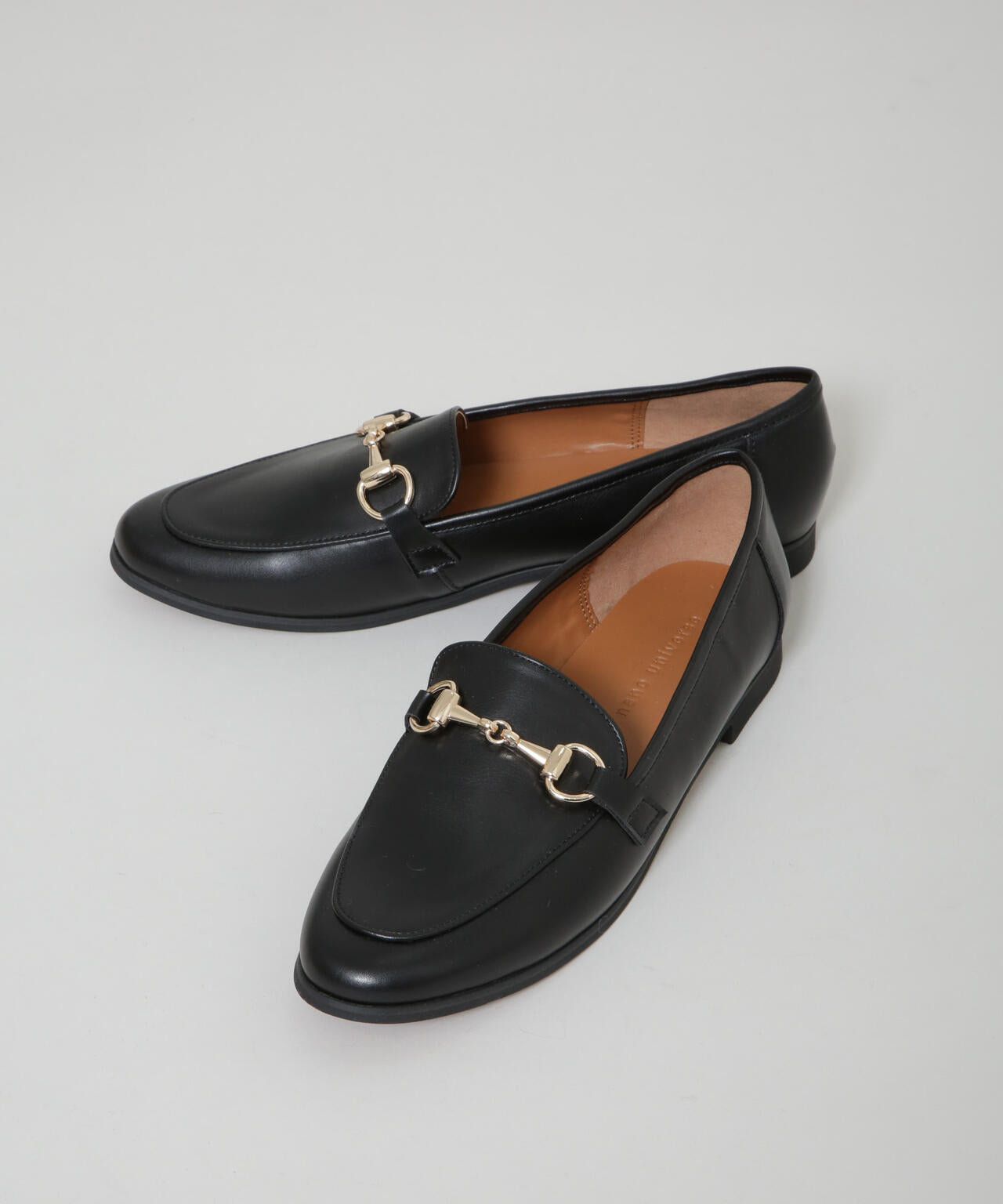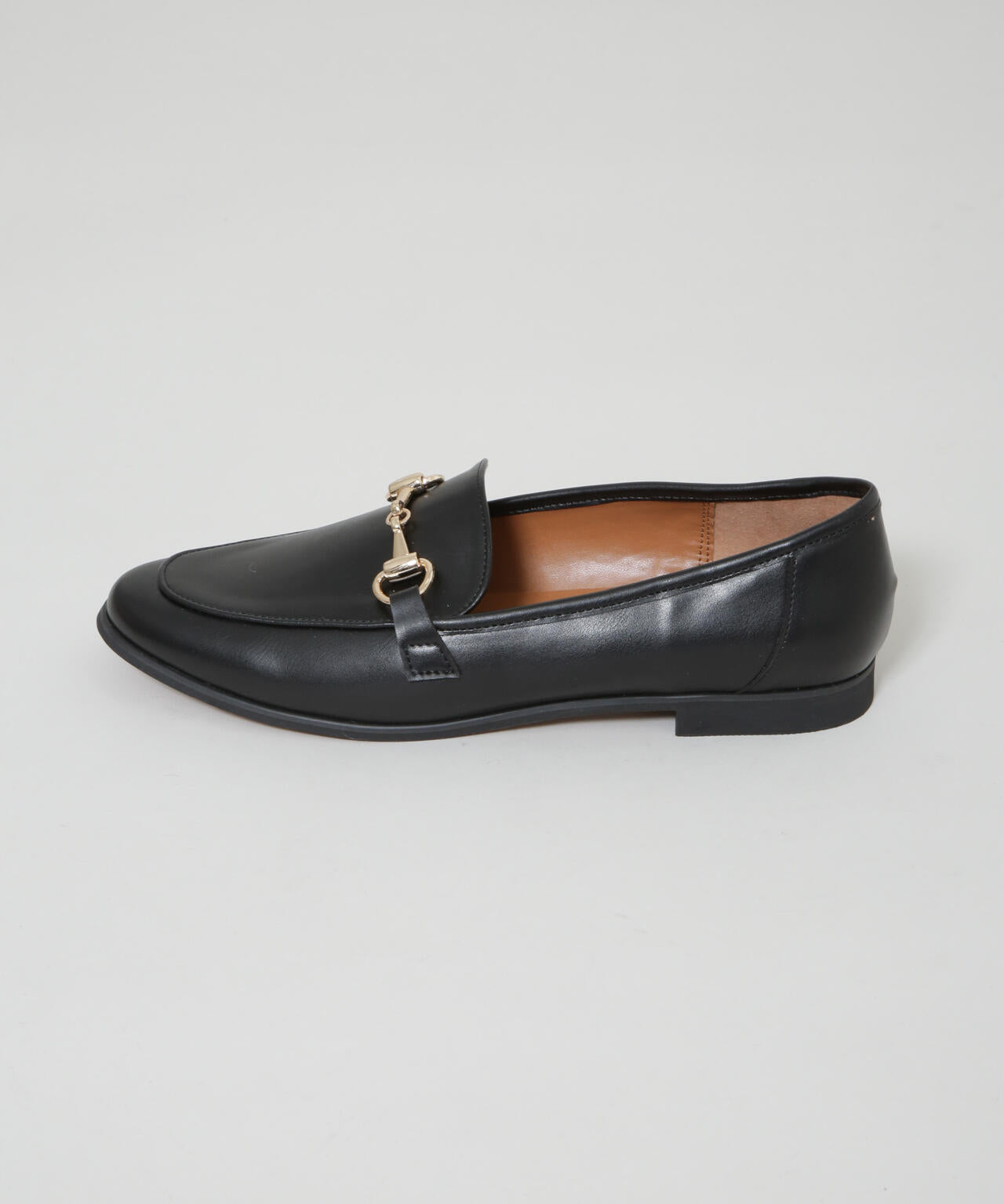 アッパーの金具ディテールが効かせるビットローファー。定番のレザー調とベロアの2素材展開で、シーズンムードが高まるルックスに仕上げました。トレンドのルーズソックスやラメソックスを合わせたり、ソックス+デニムスタイルもおすすめです。
