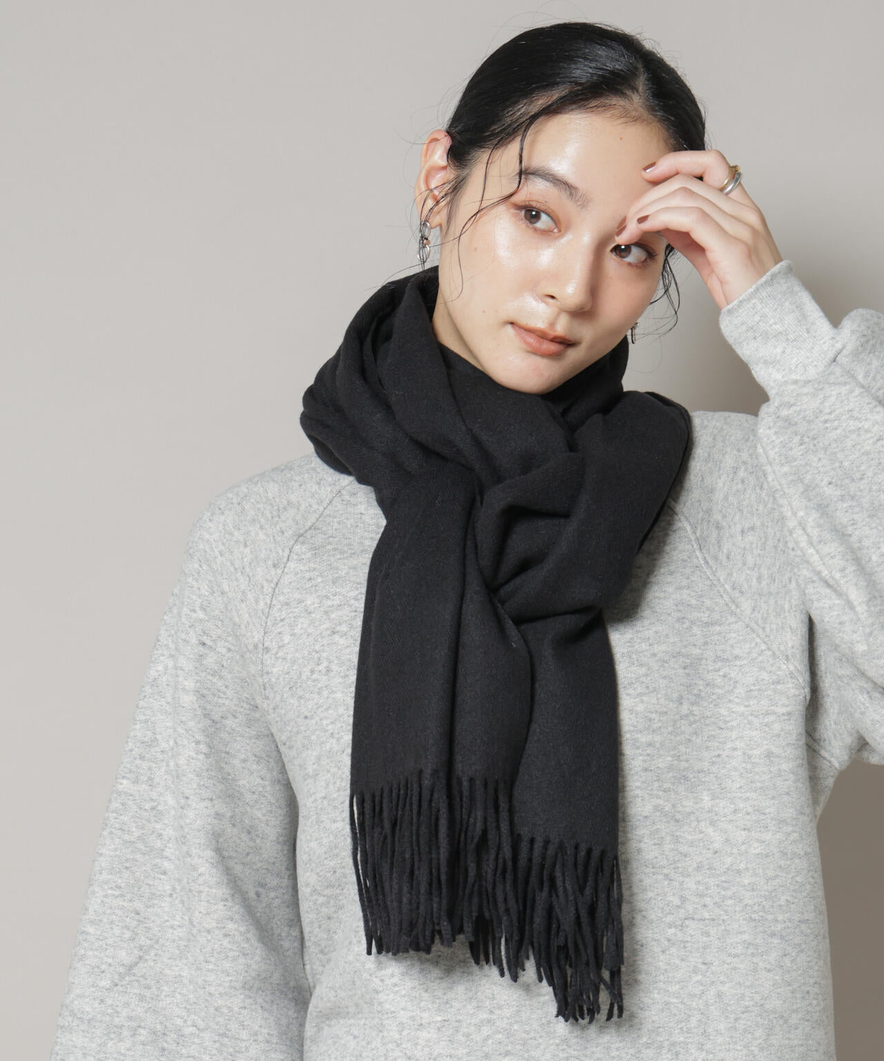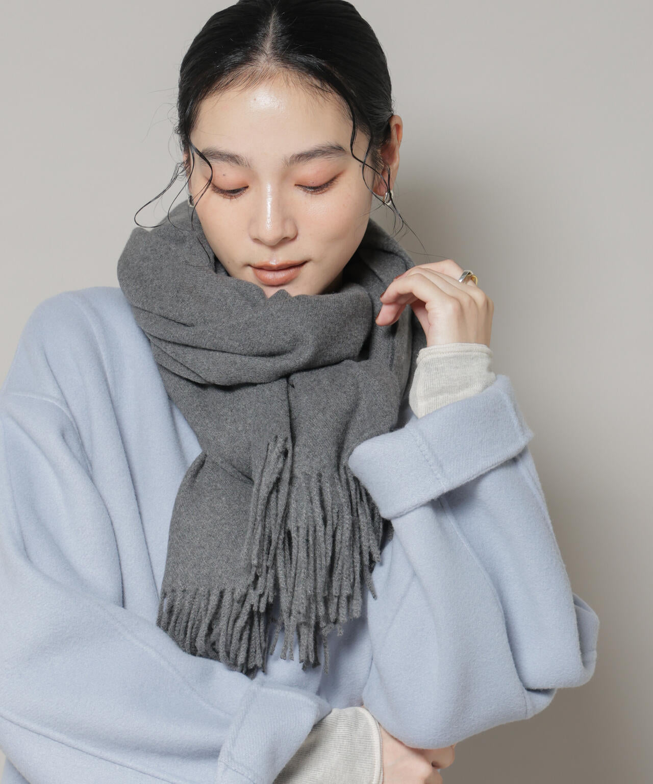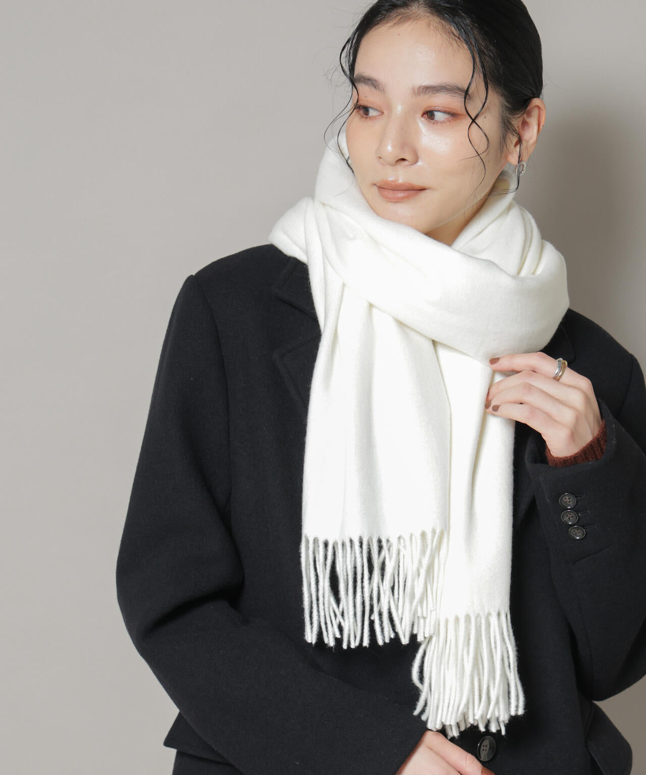 ・首に巻いて防寒対策はもちろん、スタイリングのプラスワンでコートの上から羽織るのもおすすめ