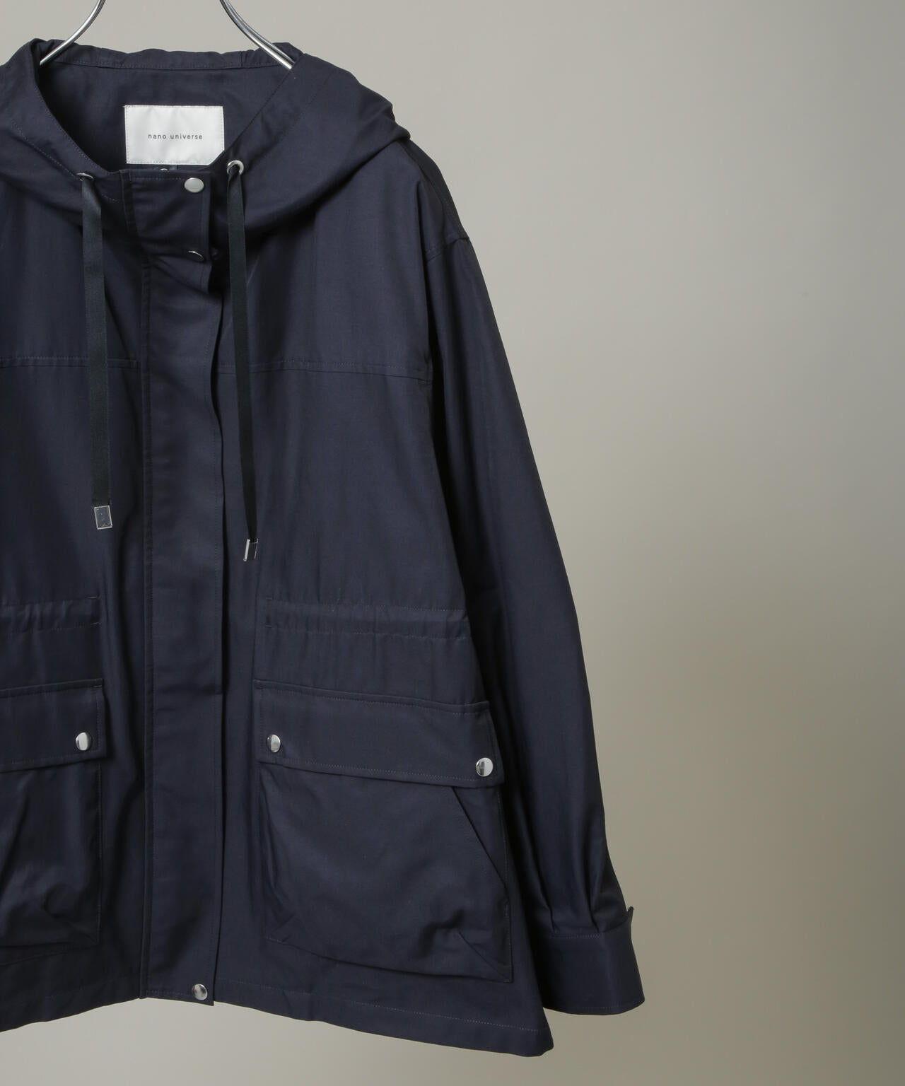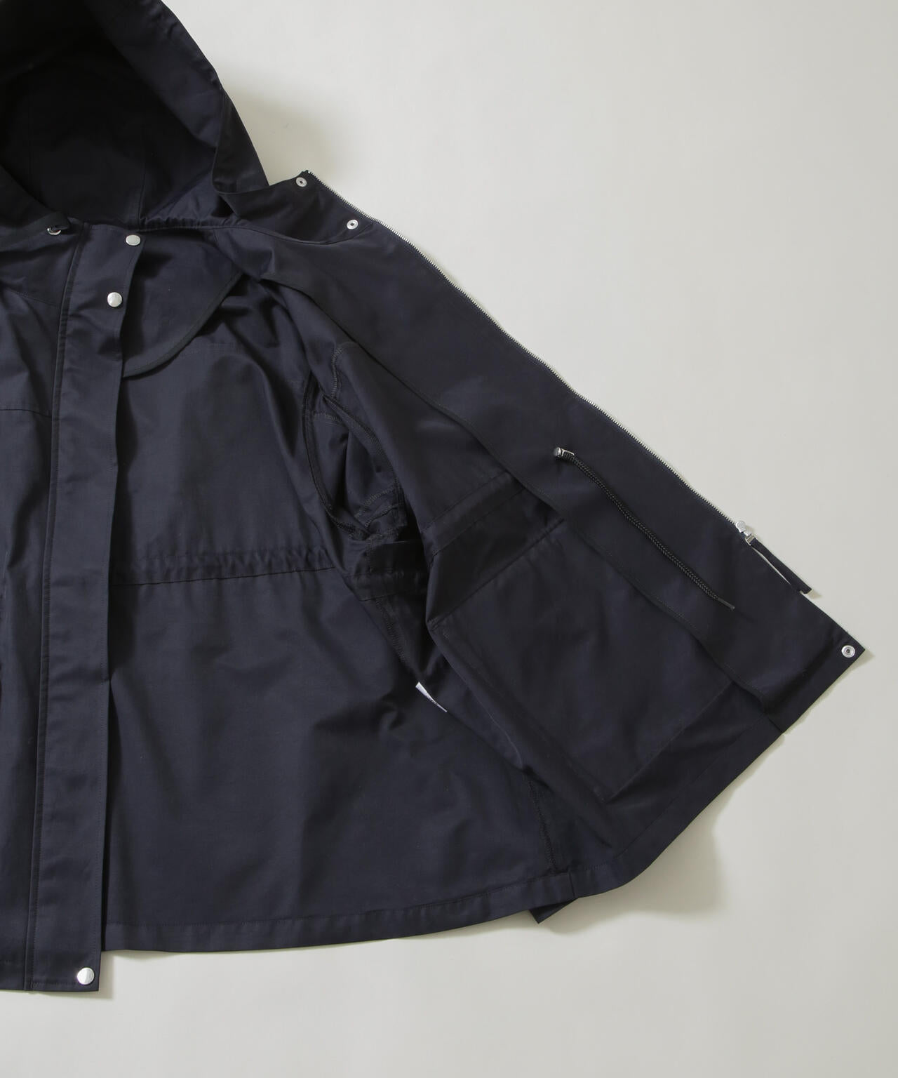 肌寒い季節や雨の日のお出かけに重宝する撥水加工を施したフードブルゾン。厚手すぎない生地感で冬のニットの上からでもサッと羽織りやすく、程よくゆとりのあるシルエット。素材感と機能性をバランス良く取り入れ、幅広いスタイリングに対応できる汎用性の高い一着です。