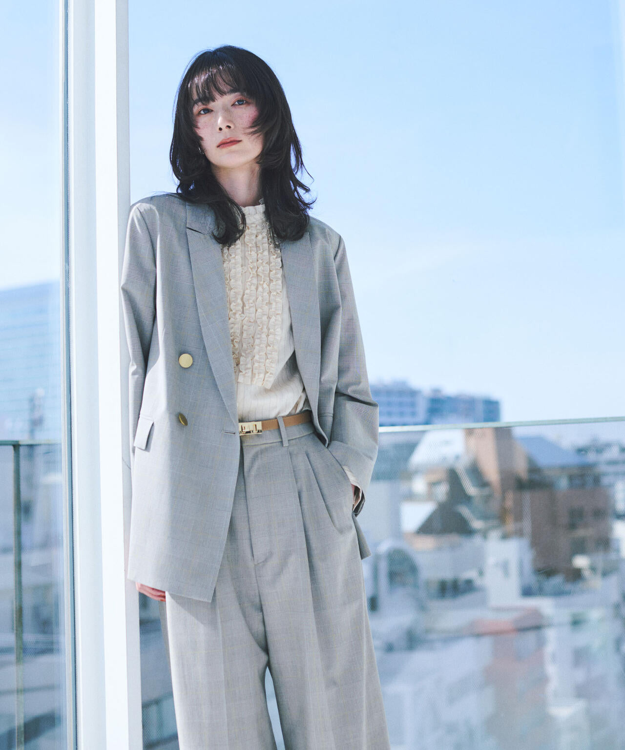 ・セットアップ映えするス―チング素材で仕立てた一着