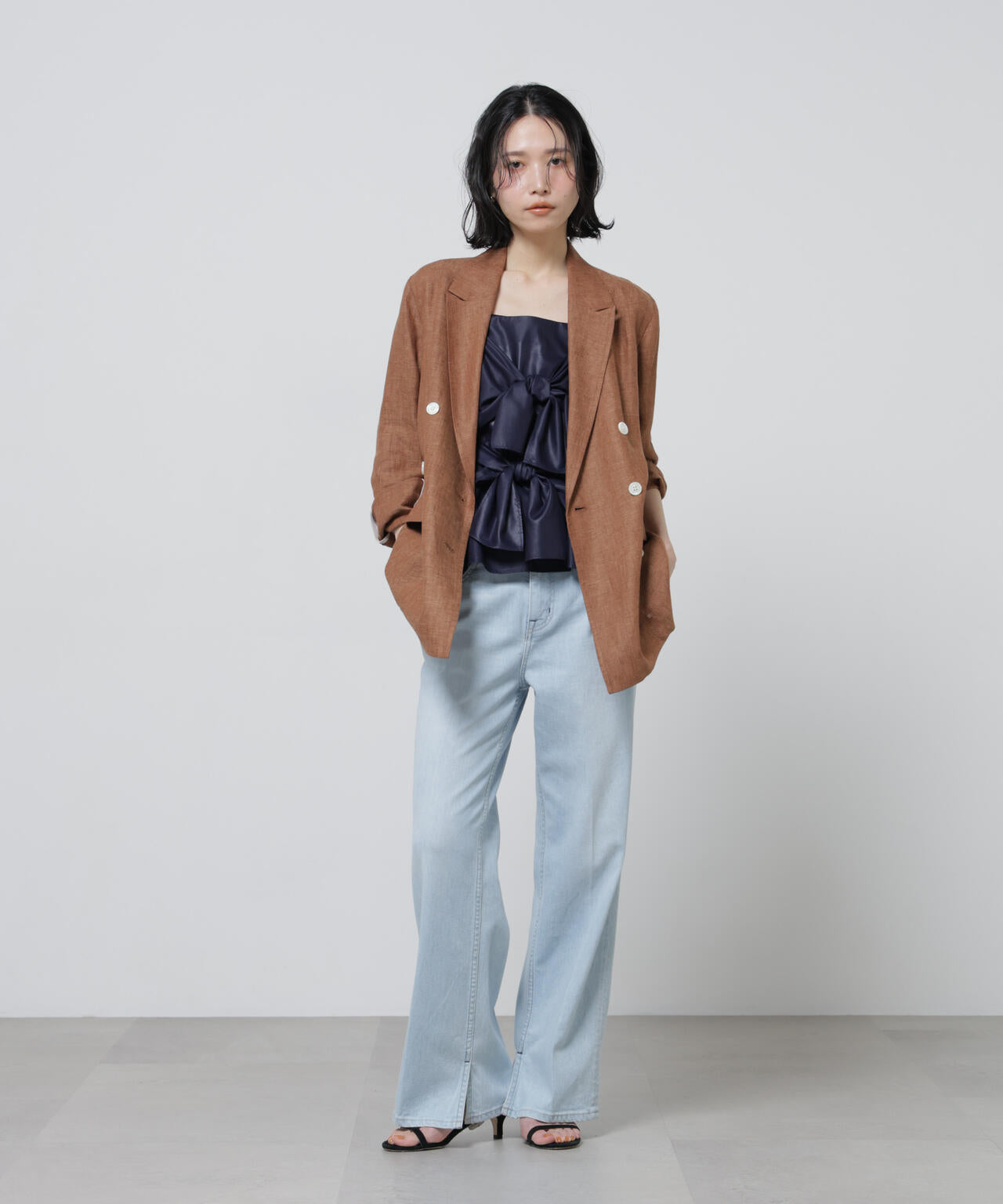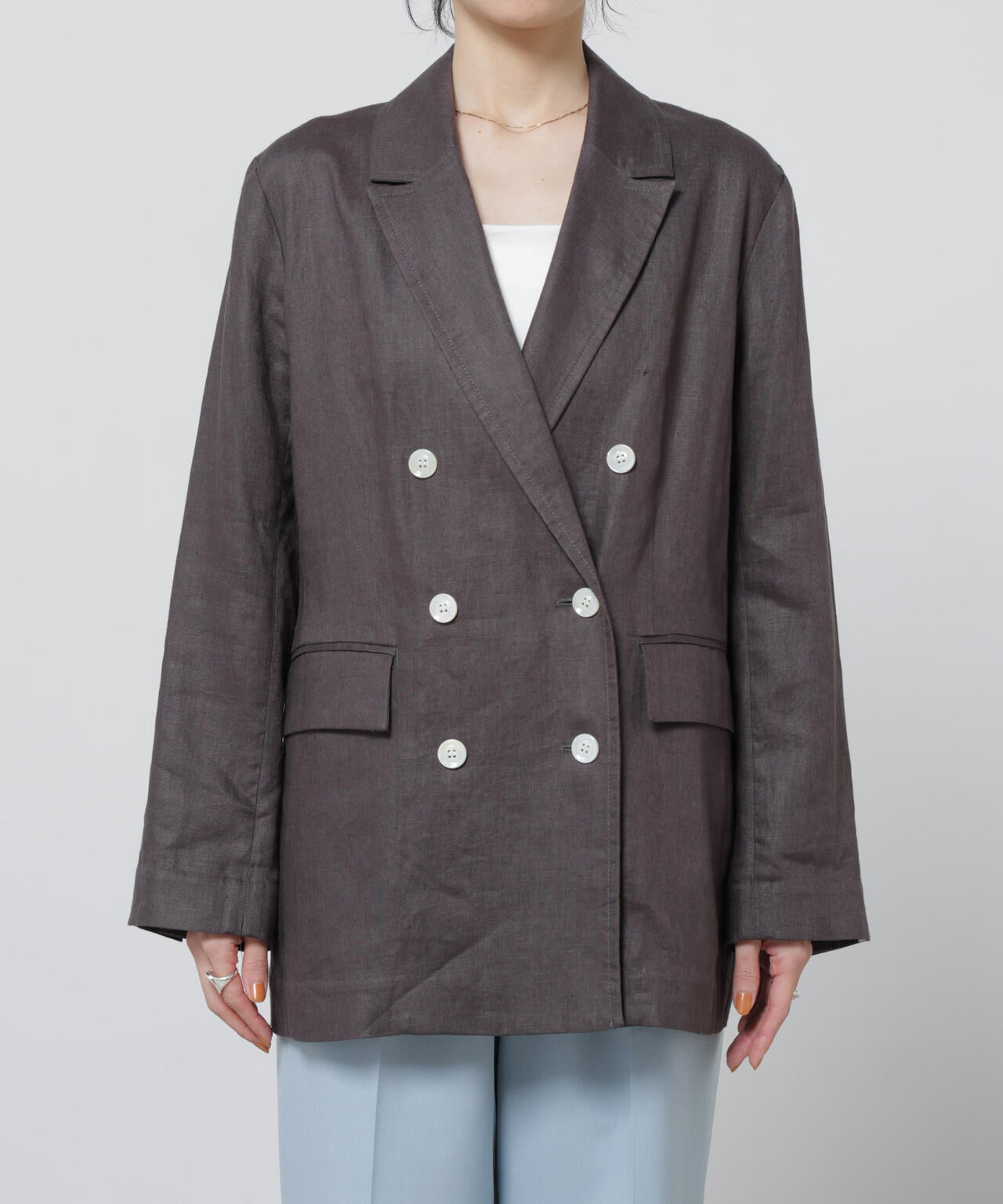 ・リネンの軽やかな素材感を活かした裏地無しのダブルジャケット