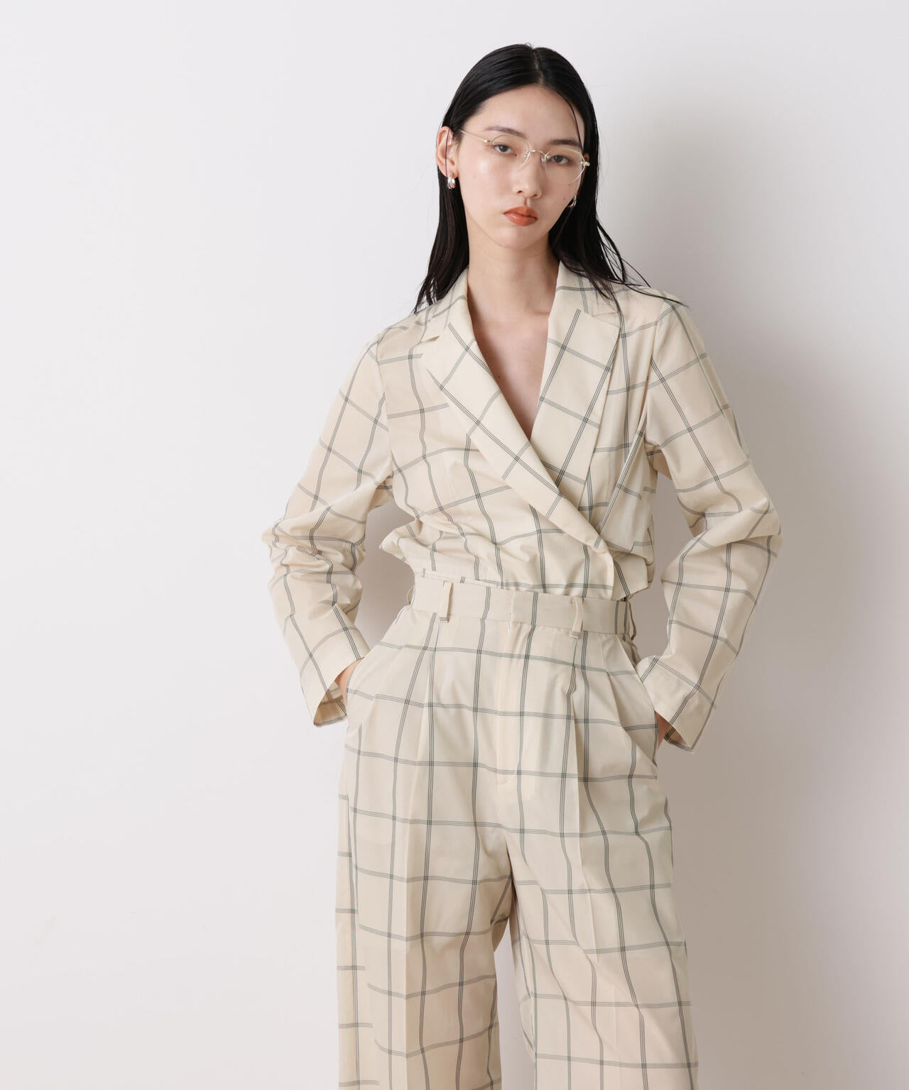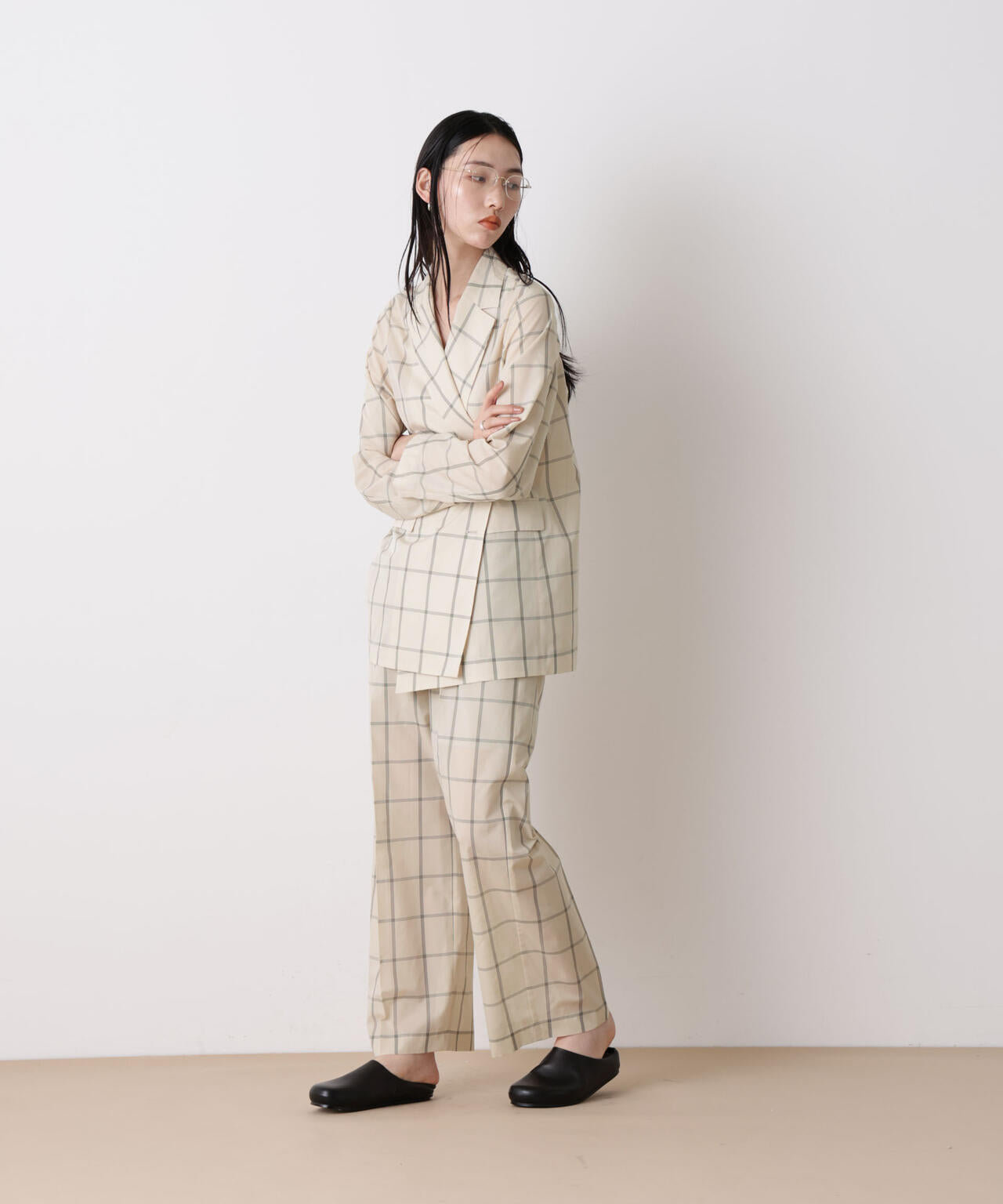 (アイボリー&ブラックチェック)やわらかさの中にモード感をプラスした配色
