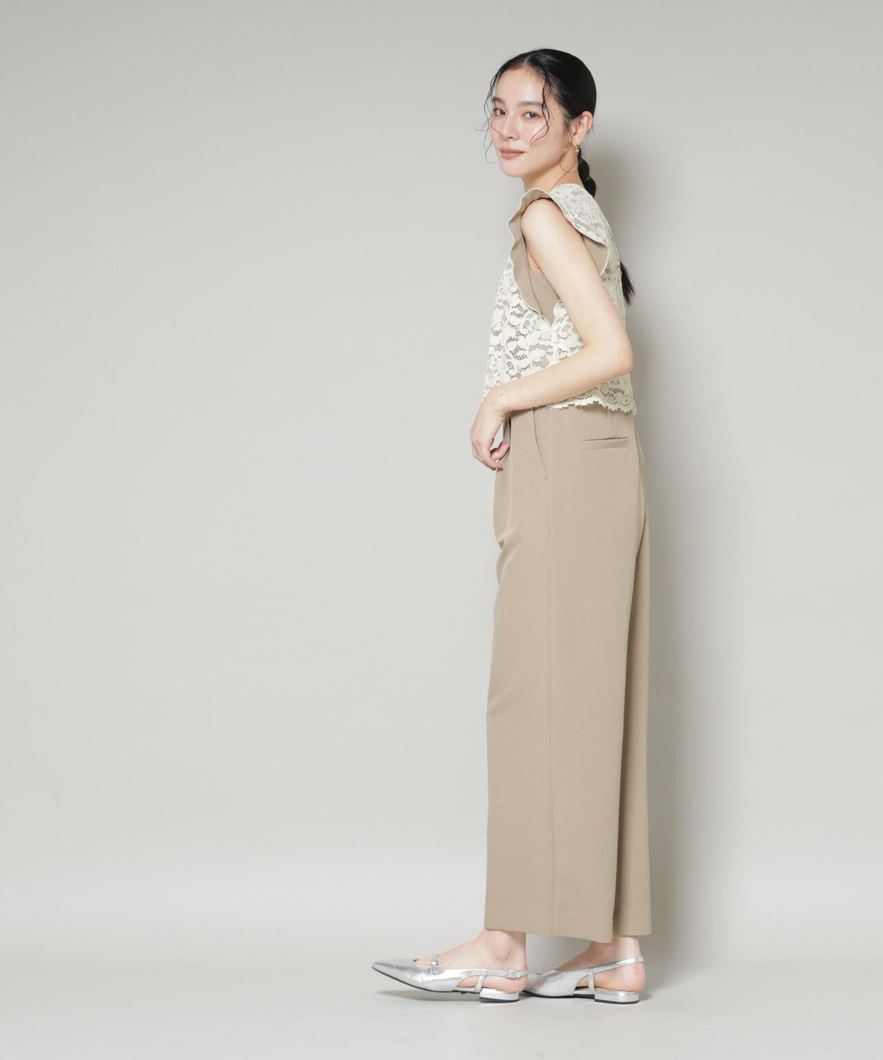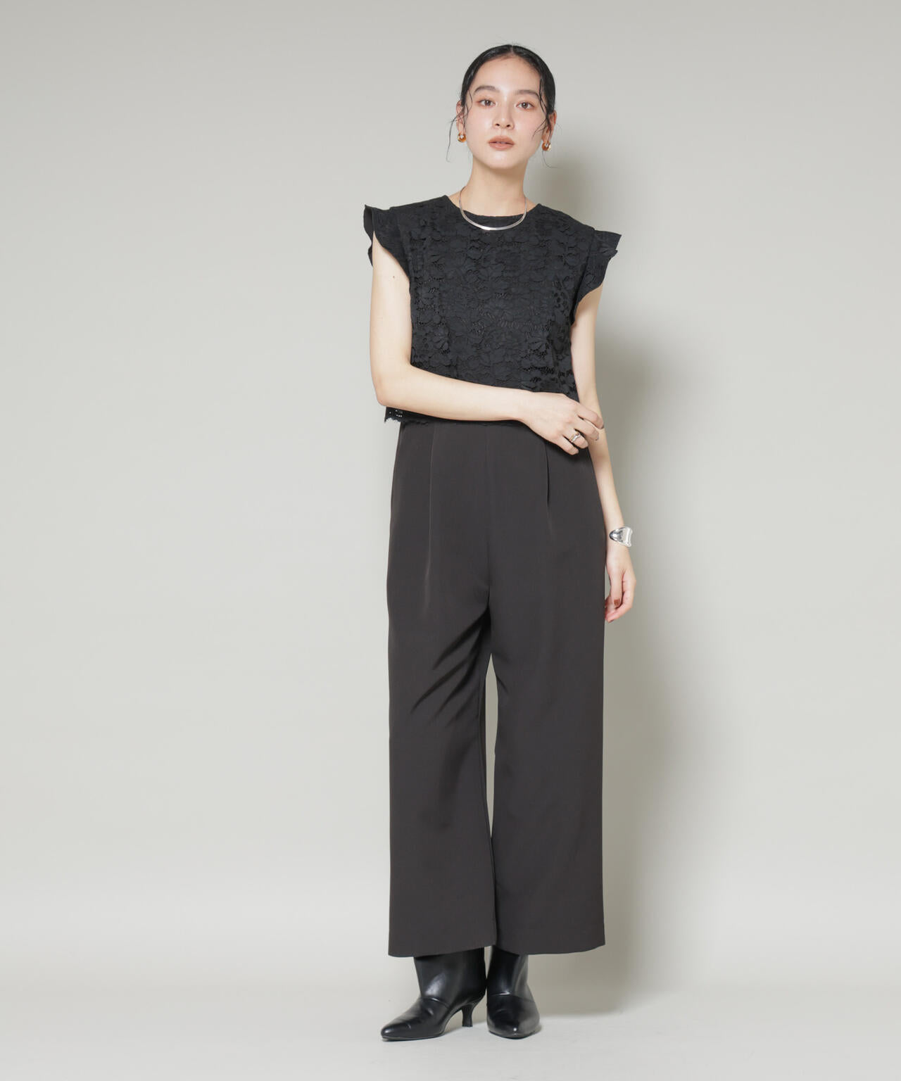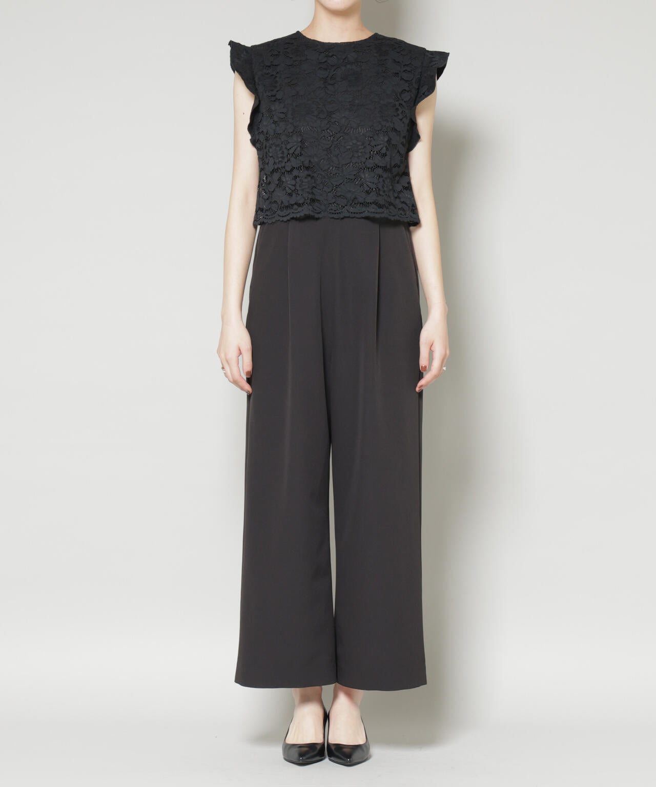繊細なレーストップスをドッキングしたオールインワン。大人フェミニンな要素をプラスしたデザインで、オケージョンシーンからお呼ばれ、セレモニーまで幅広く重宝する一着です。