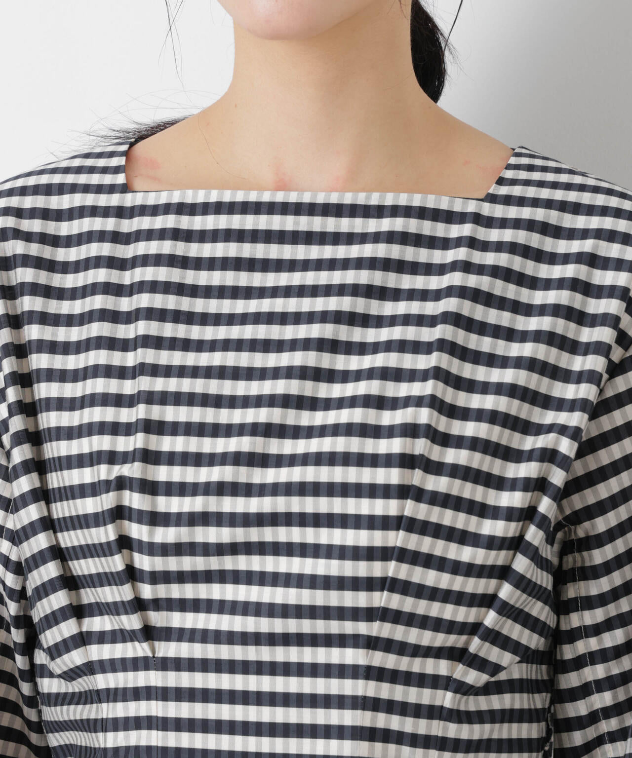 ・首元はすっきりときれいに見せてくれるスクエアネック