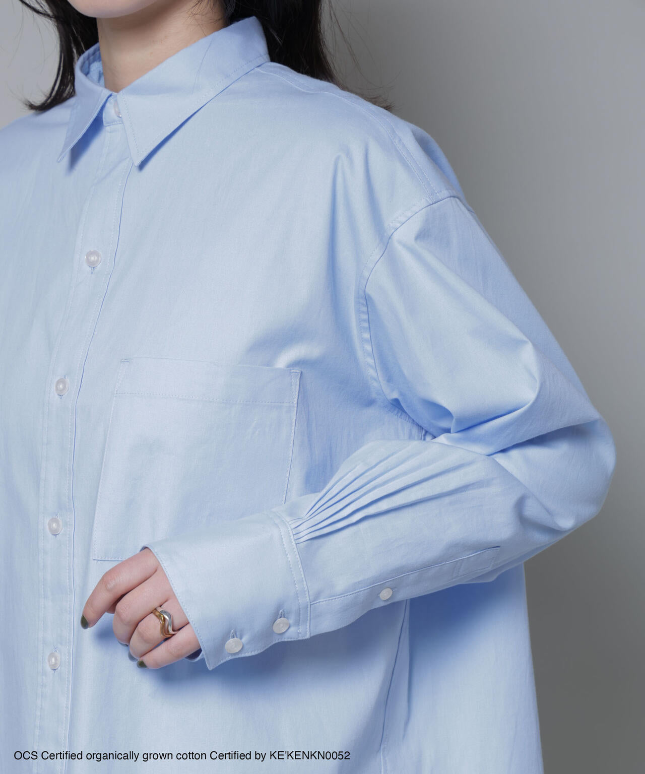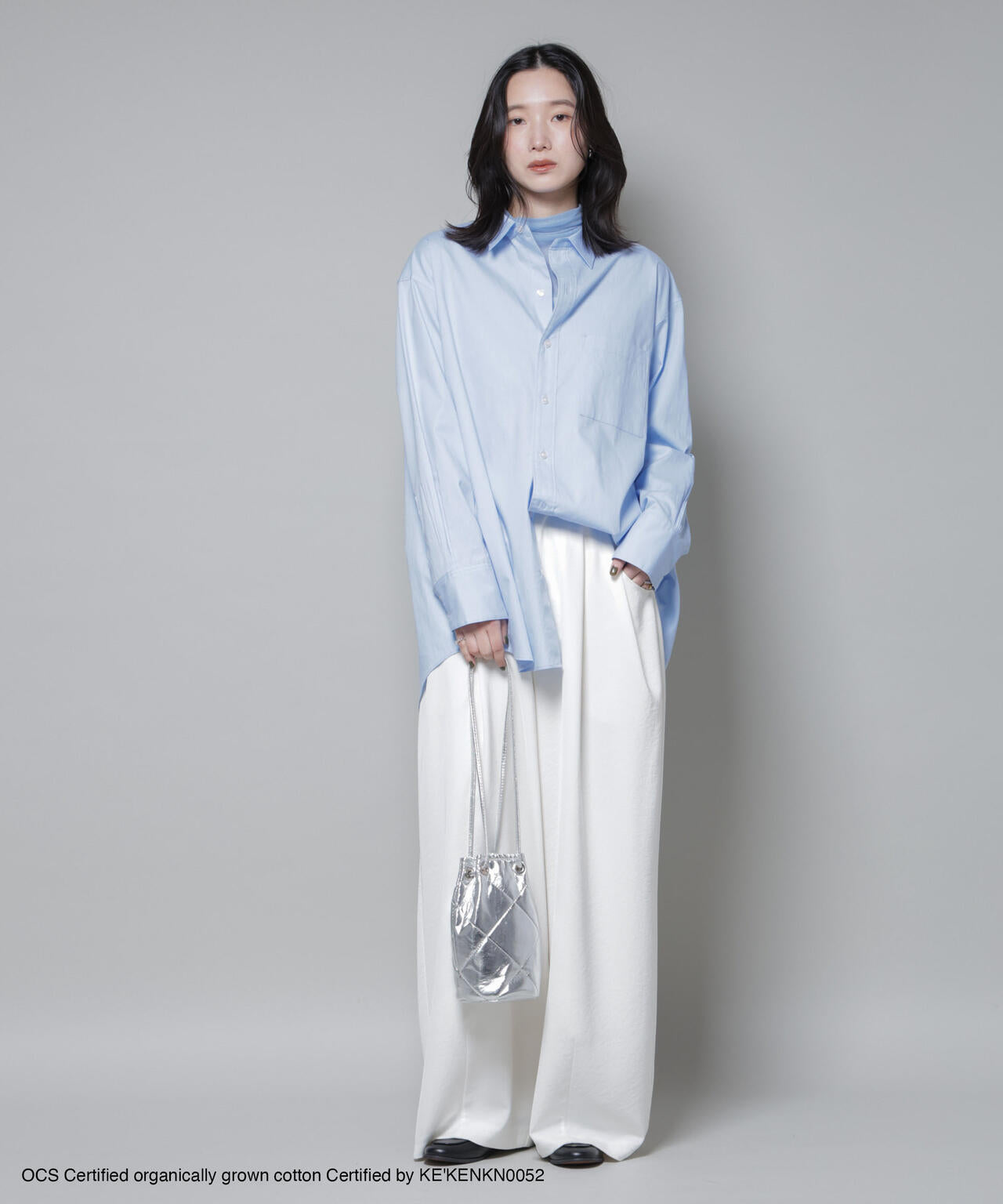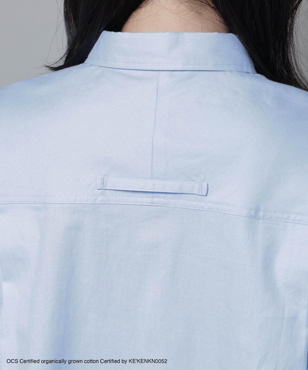 OCS認証を取得したオックスフォードシャツ。ステッチやボタンの間隔などオーセンティックな作りの中に、女性らしい抜け感や遊びをディテールやシルエットに落とし込んだデザインです。