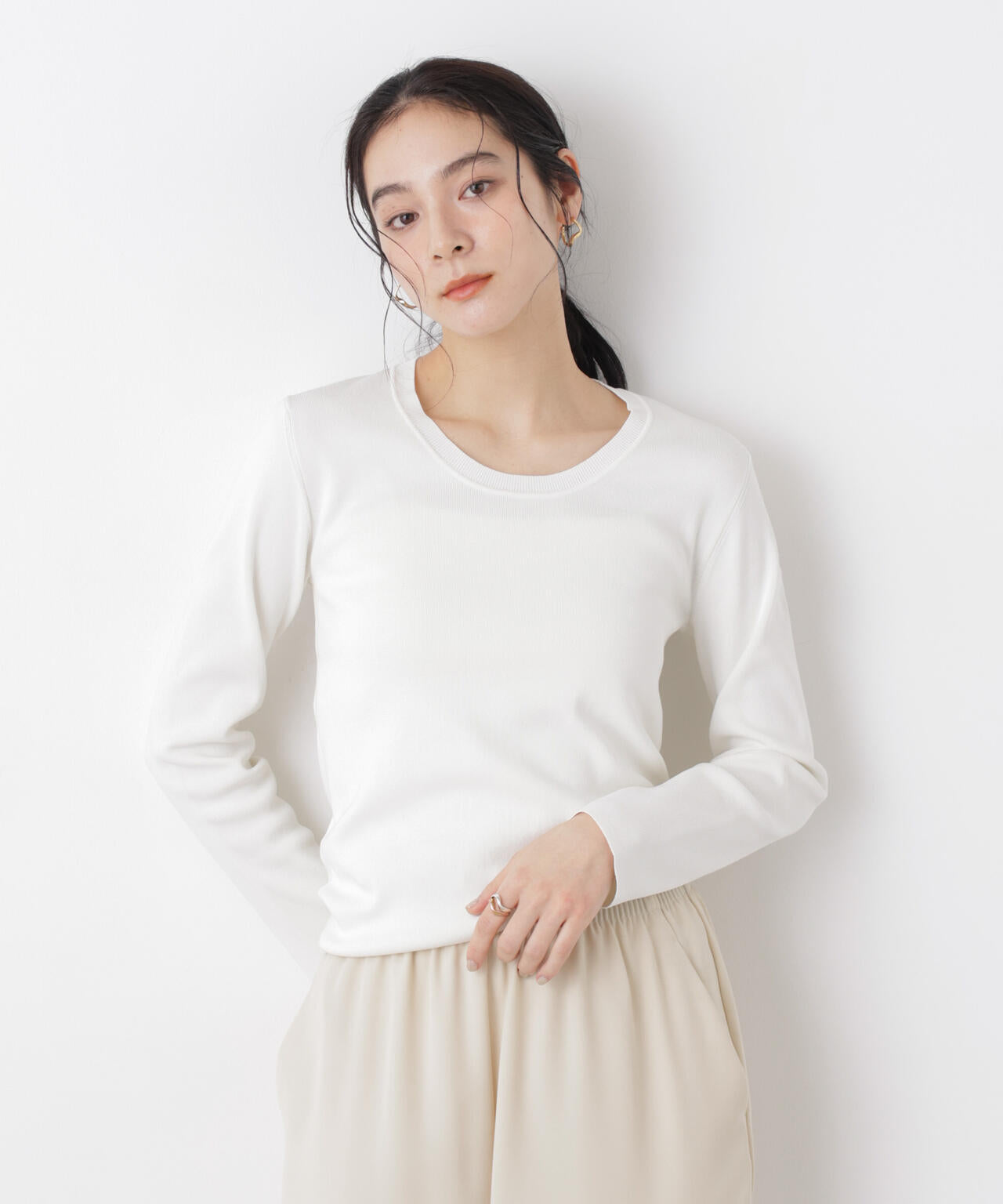 首元がすっきり見えするUネックデザイン