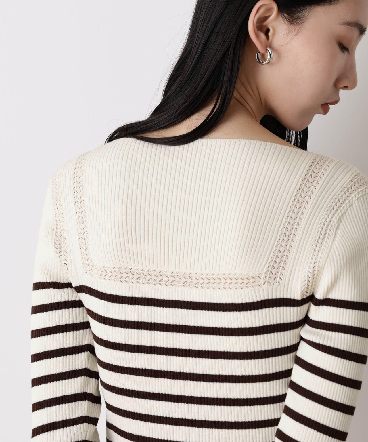 今季も「STEVELOUR」シリーズが登場!シンプルなボーダーピッチにレース編みを施し、フェミニンに仕上げたニット。肩まわりと後ろ姿にはセーラーカラー風のレース編みをあしらい、さりげないアクセントをプラス。ボトムスインはもちろん、ジャケットのインナーとしても活躍する一枚です。