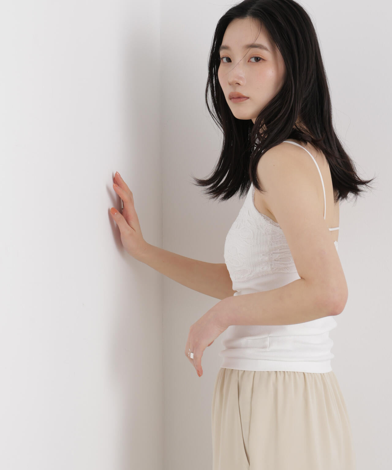 ・6696124315 レースジャガードカップ取り外しクロップドキャミソール