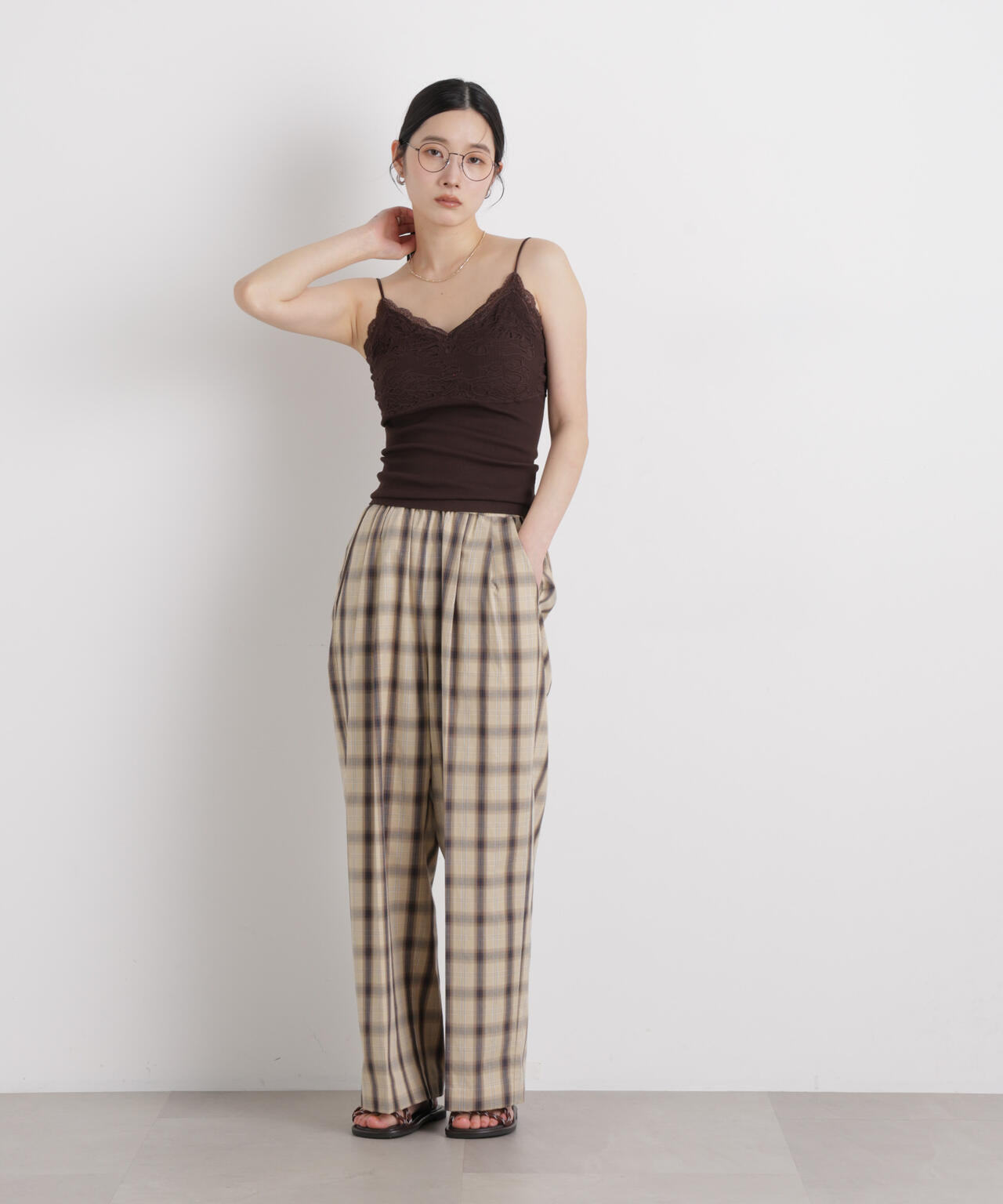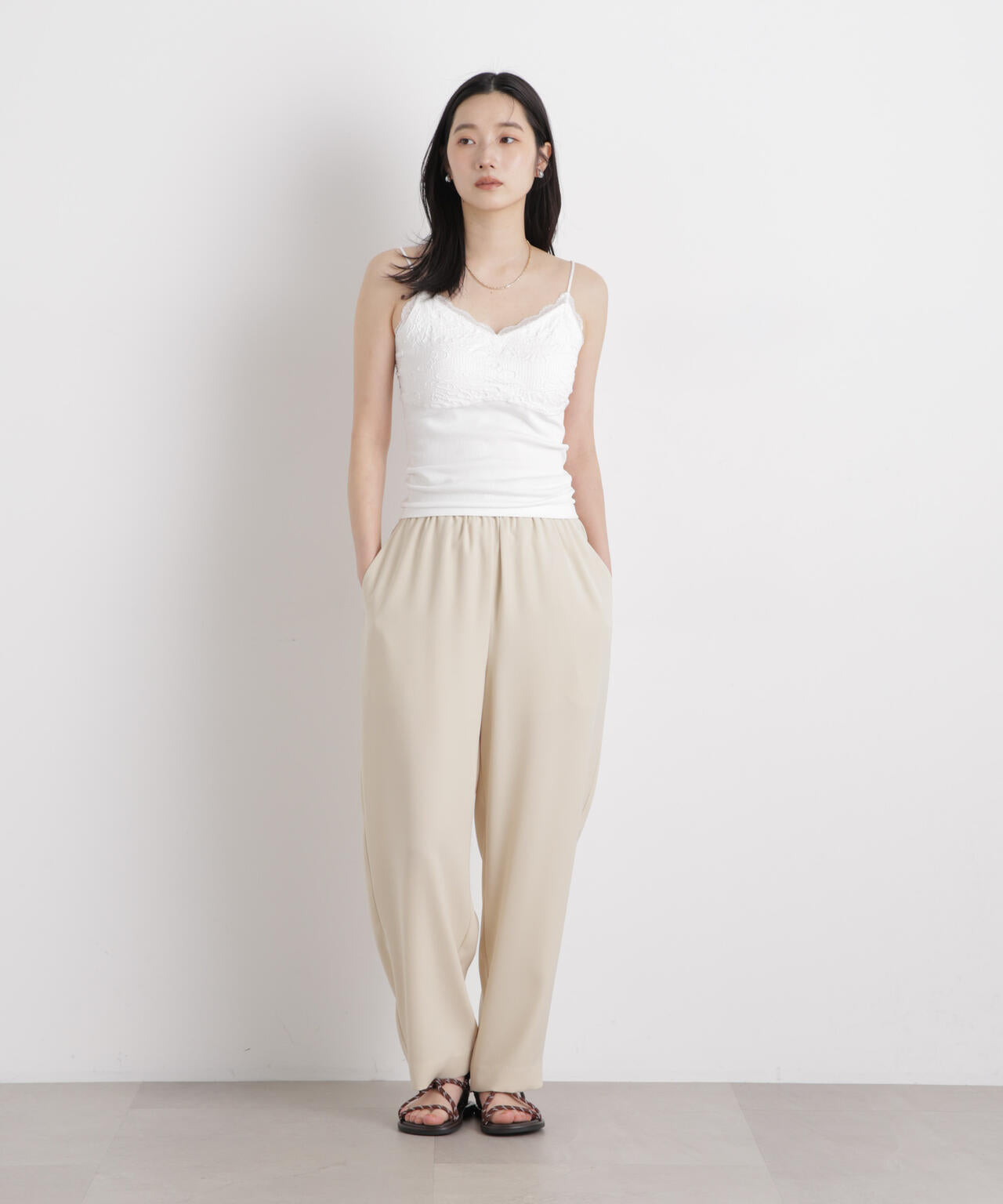 上端は繊細な細幅レースでトリミングし、さりげないフェミニンさをプラス