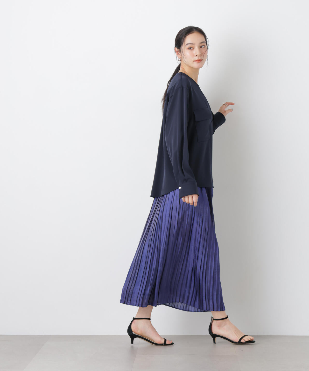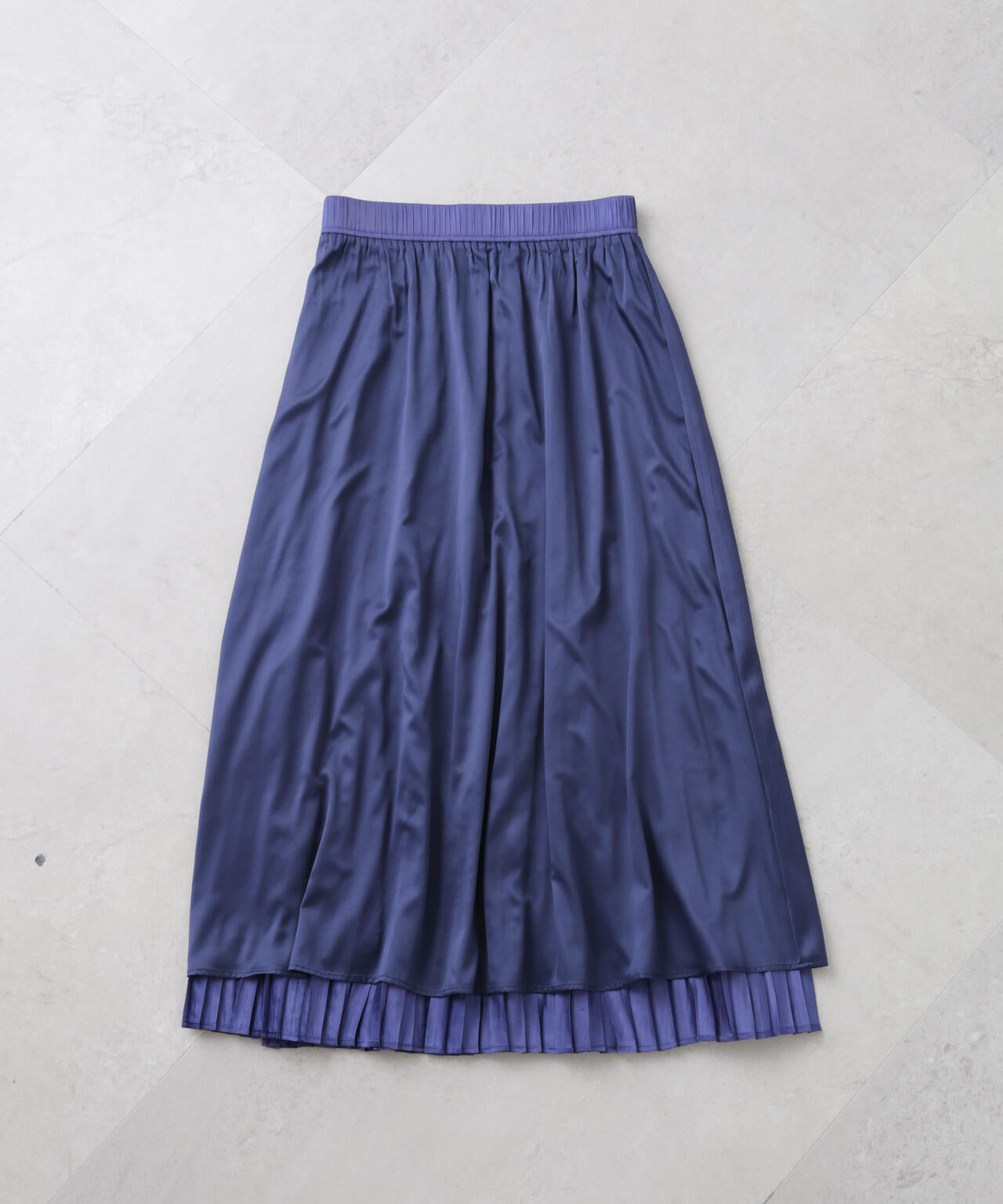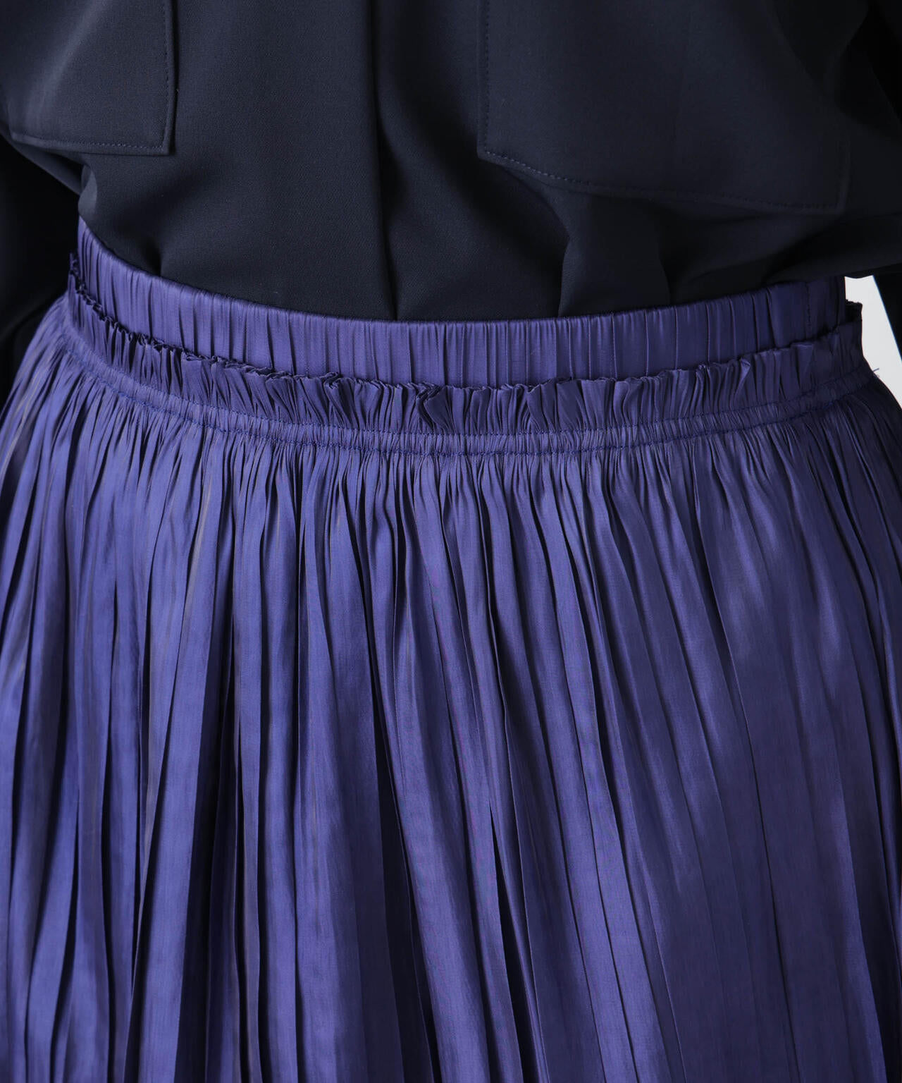 光沢感のあるサテン素材で仕立てた女性らしいプリーツスカート