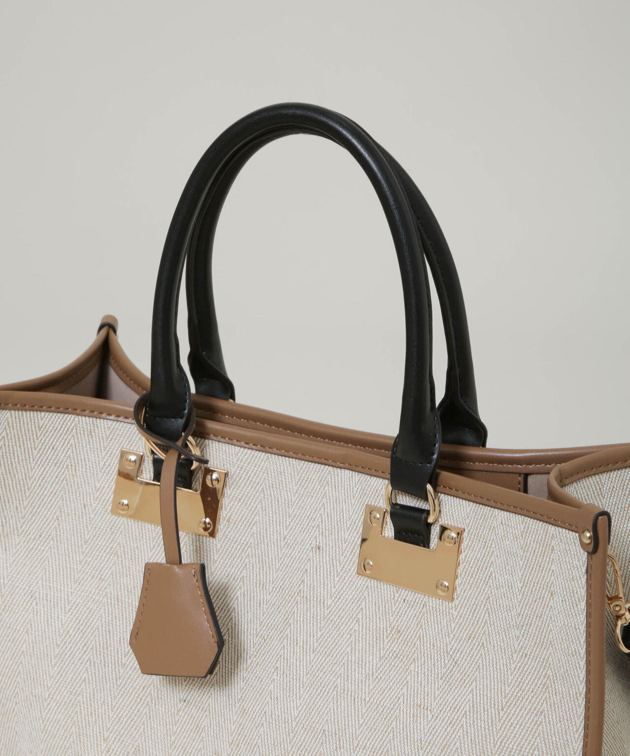 大人っぽく落ち着いた雰囲気に仕上げた、バイカラーのキャンバスバッグ