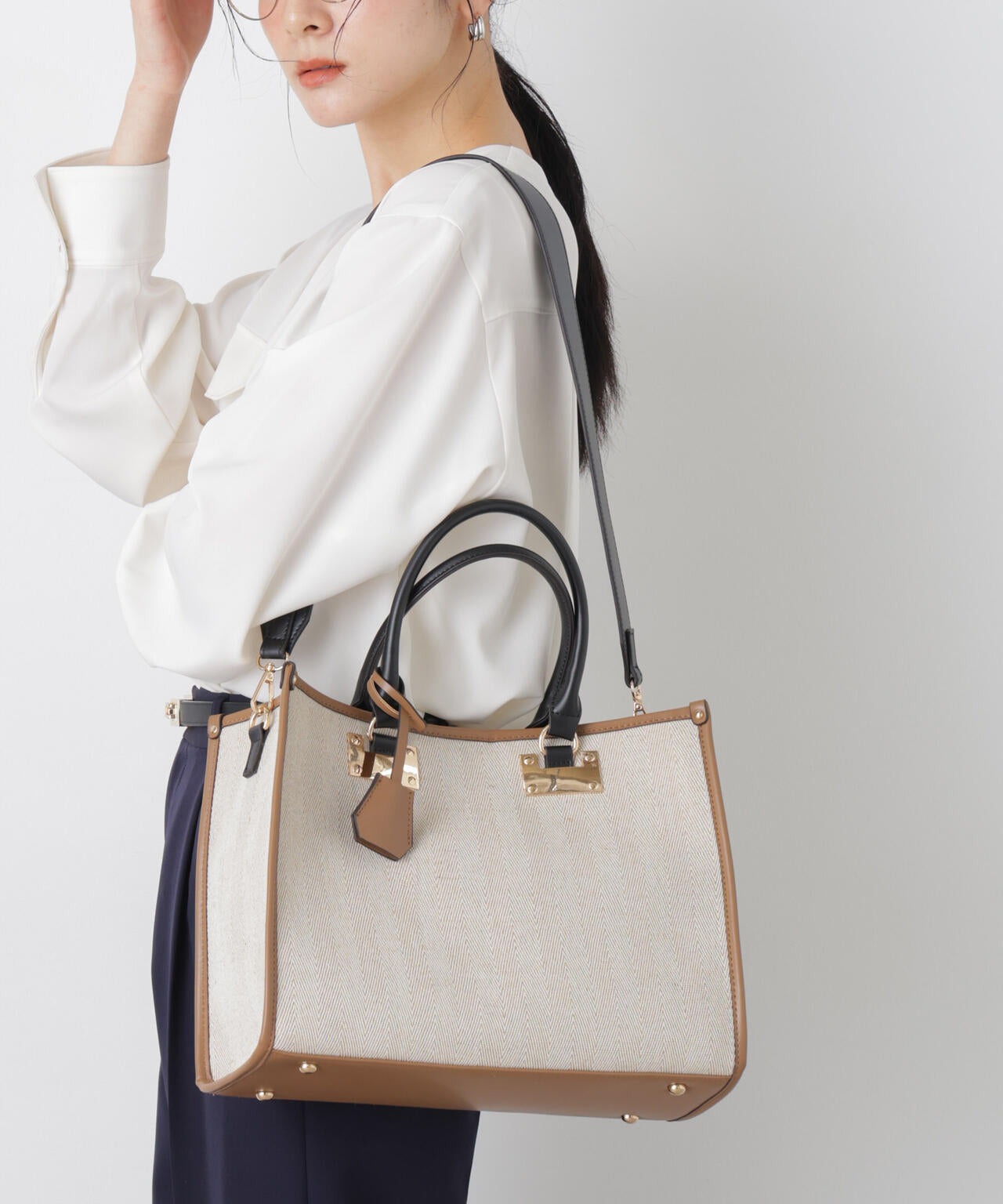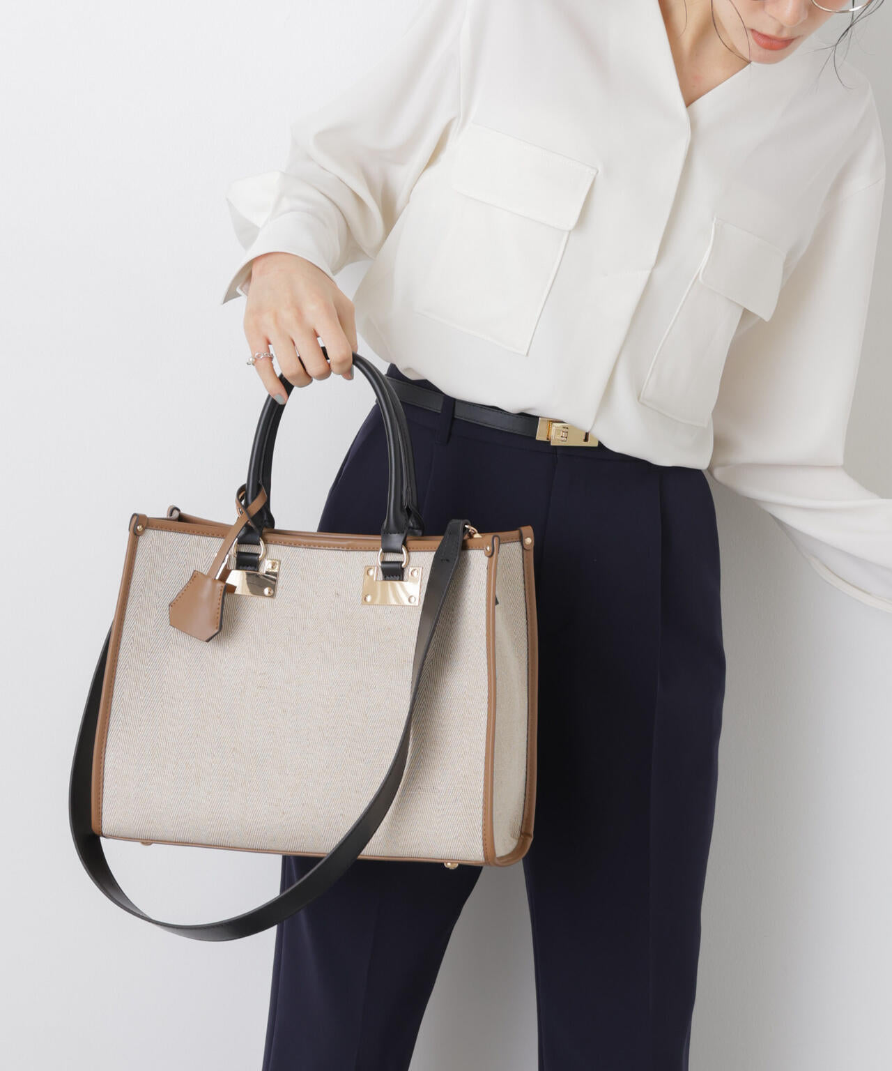 キャンバス地と合成皮革を組み合わせた、実用性の高いトートバッグ。オンスタイルにはもちろん、きちんと感を出したいお出かけや、カジュアルスタイルにも活躍する一品です。