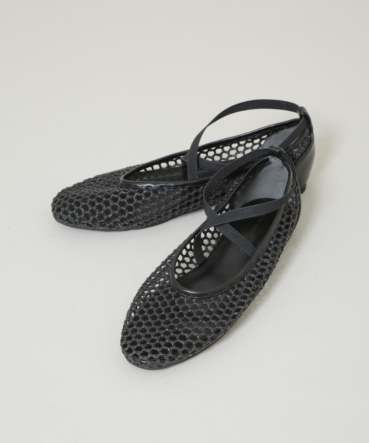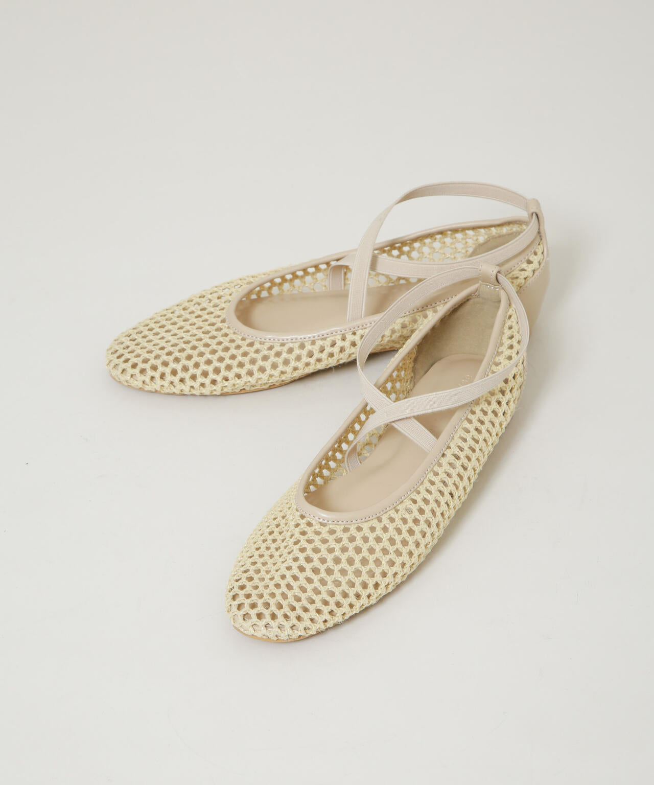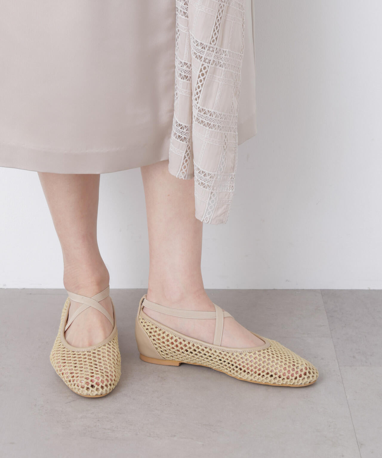 春夏らしい軽やかなメッシュ素材を使用したフラットバレエシューズ