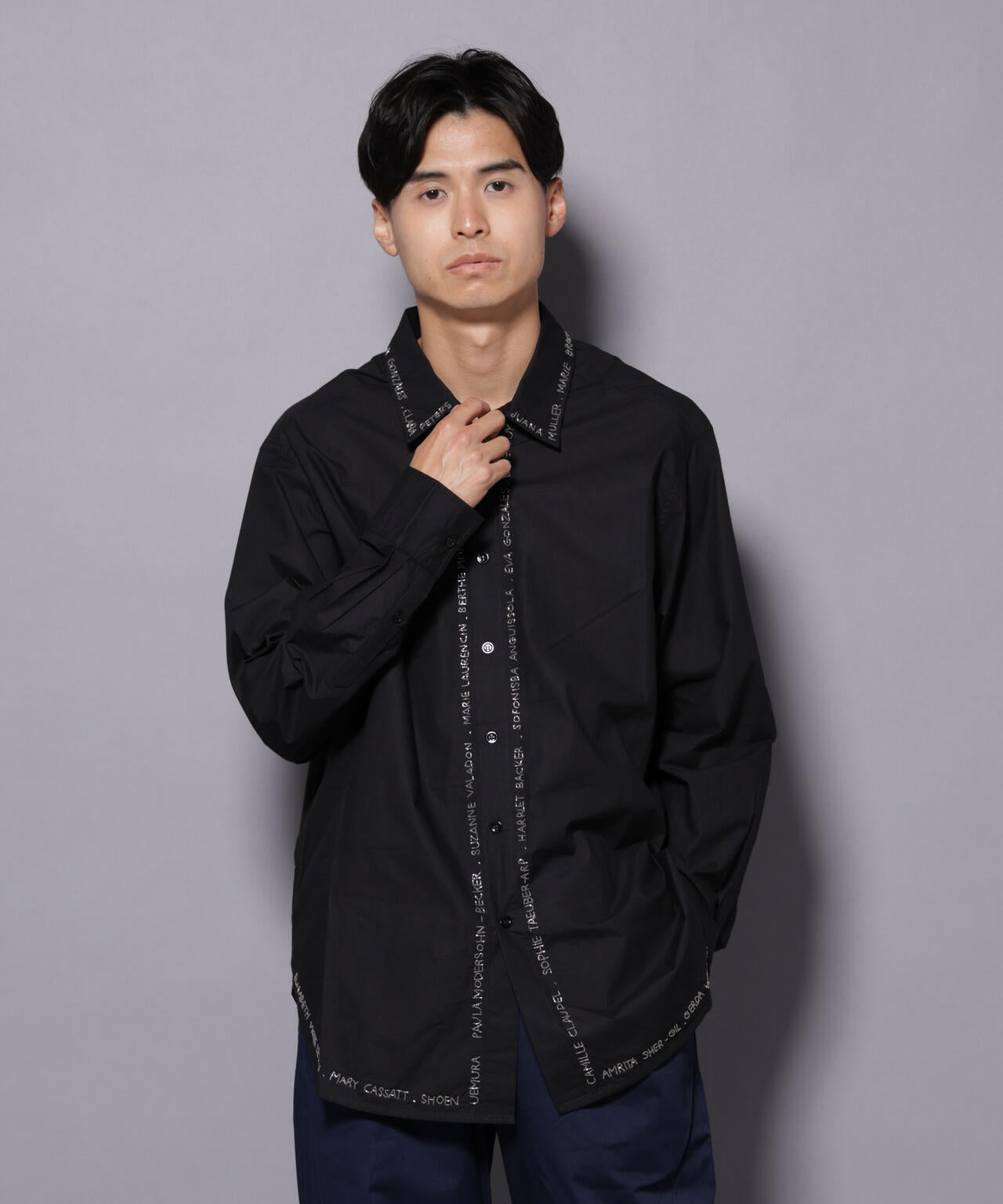 モノトーンな配色がシックな印象のレギュラーカラーシャツ。刺繍デザインがコーディネートにアクセントをプラスする主役級アイテムです。