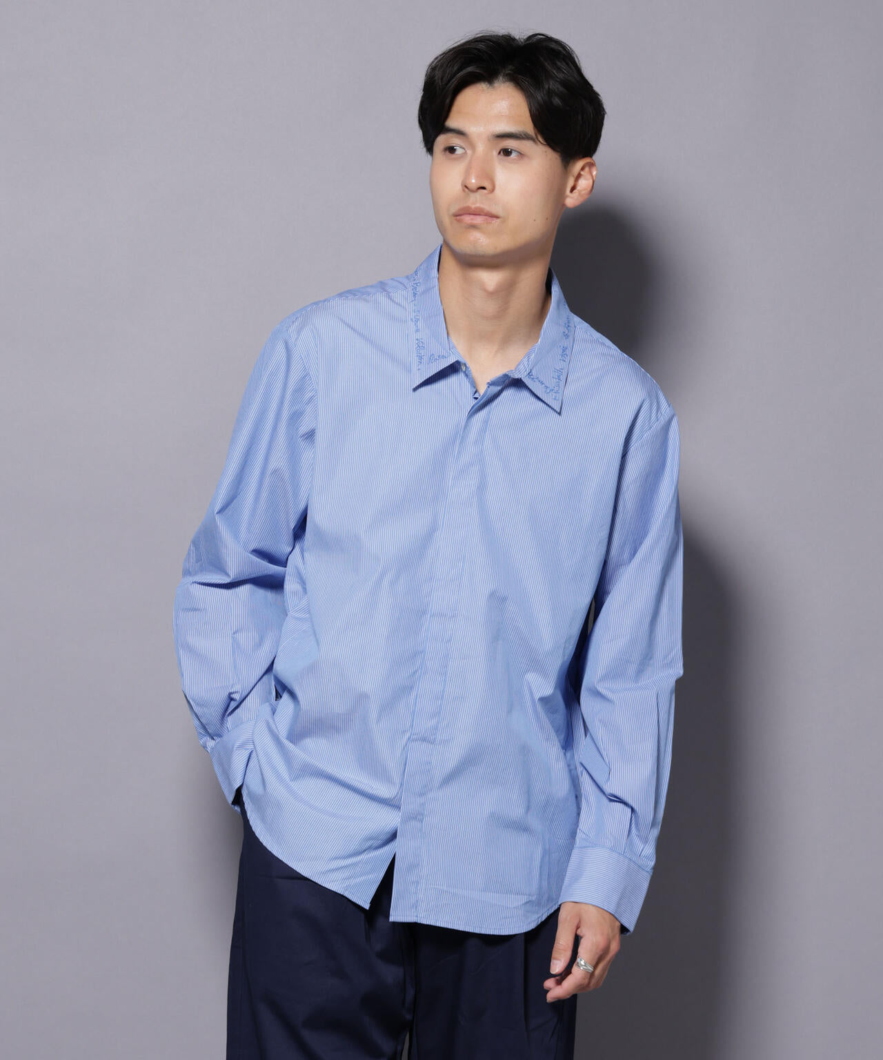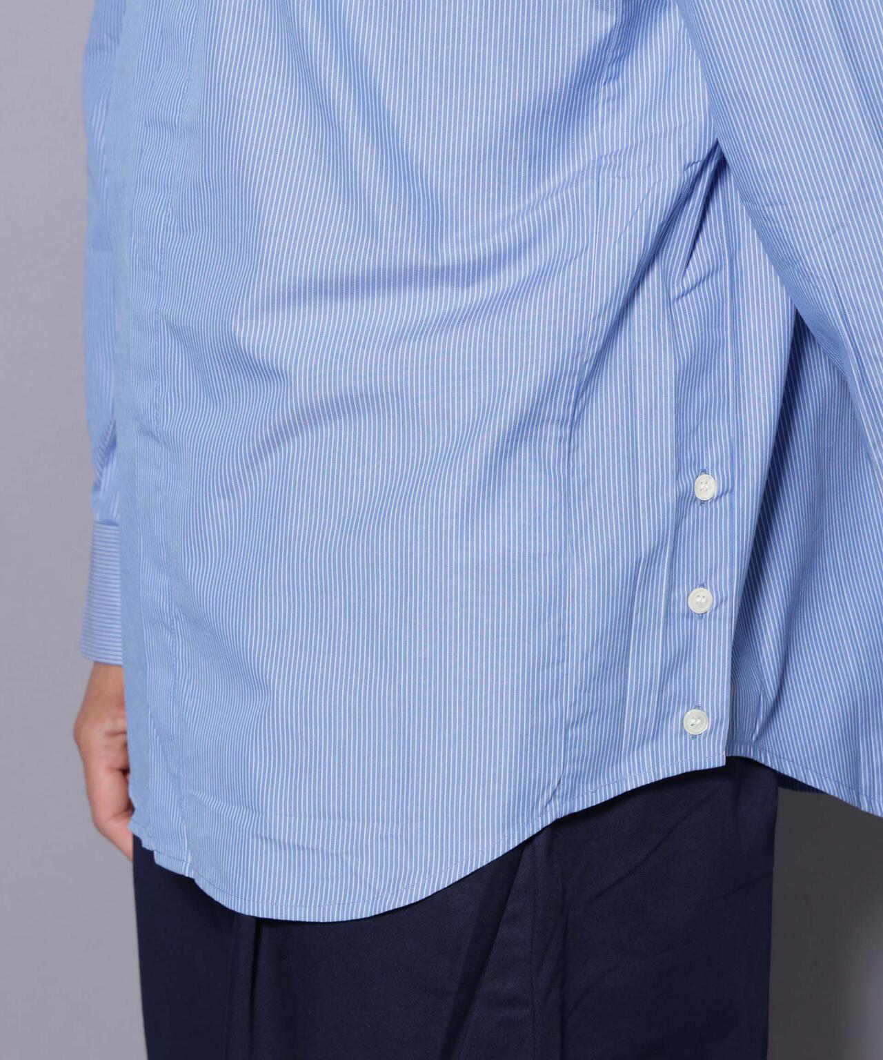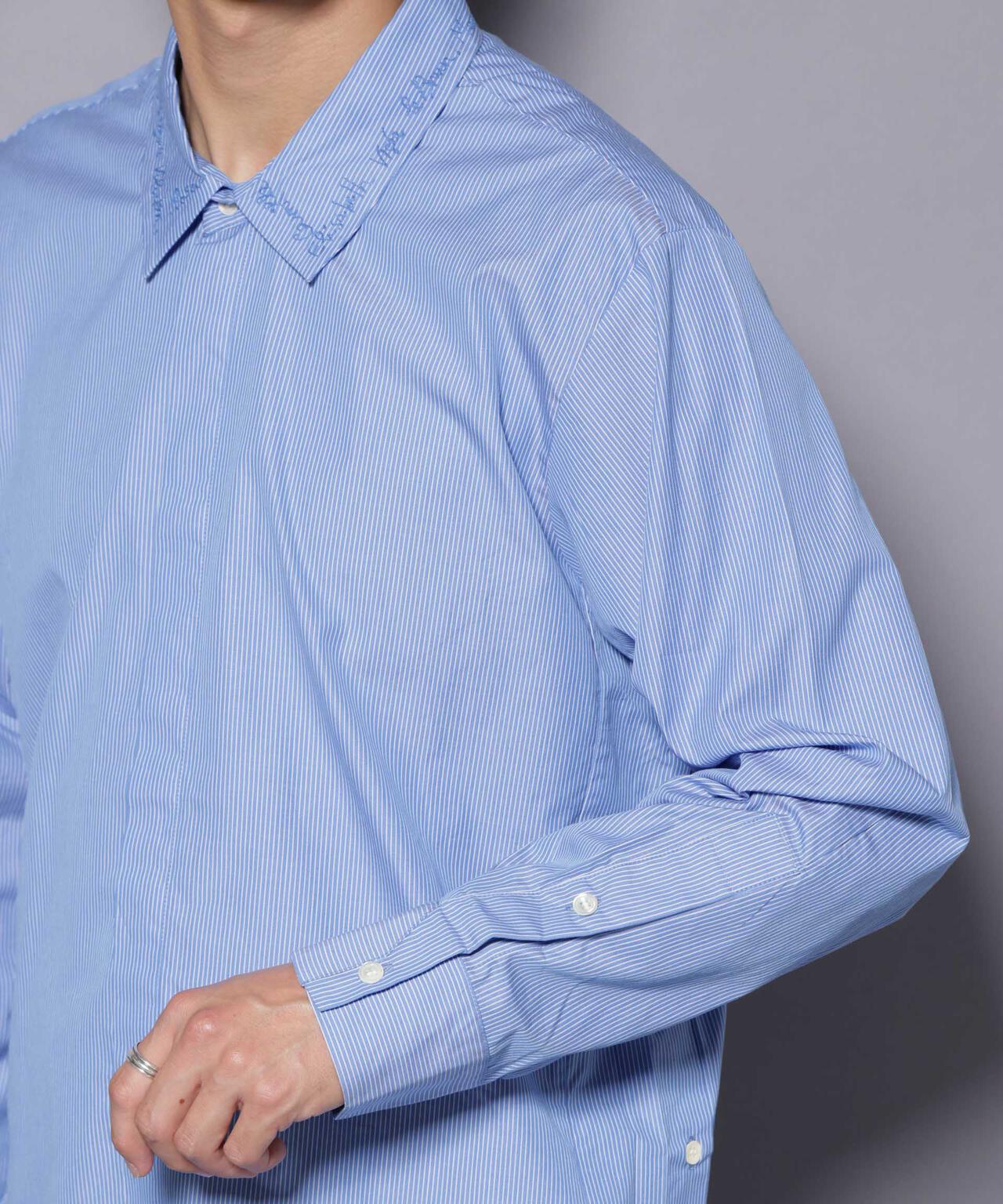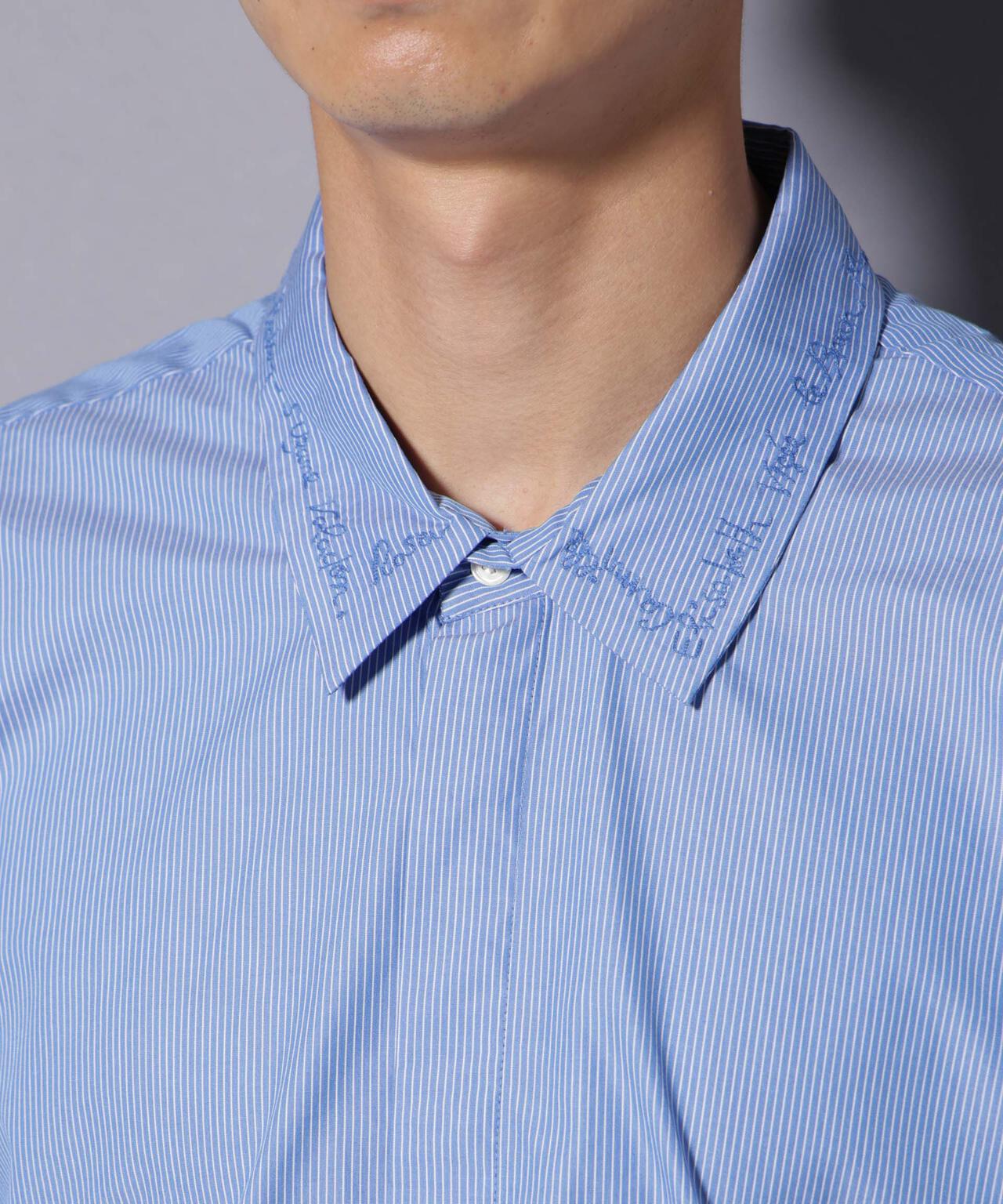 上品ながらも、さりげない刺繍デザインが遊び心のあるストライプシャツ。裾サイドの3連ボタンや比翼仕立てなど、細やかなデザインポイントが詰まった1着です。