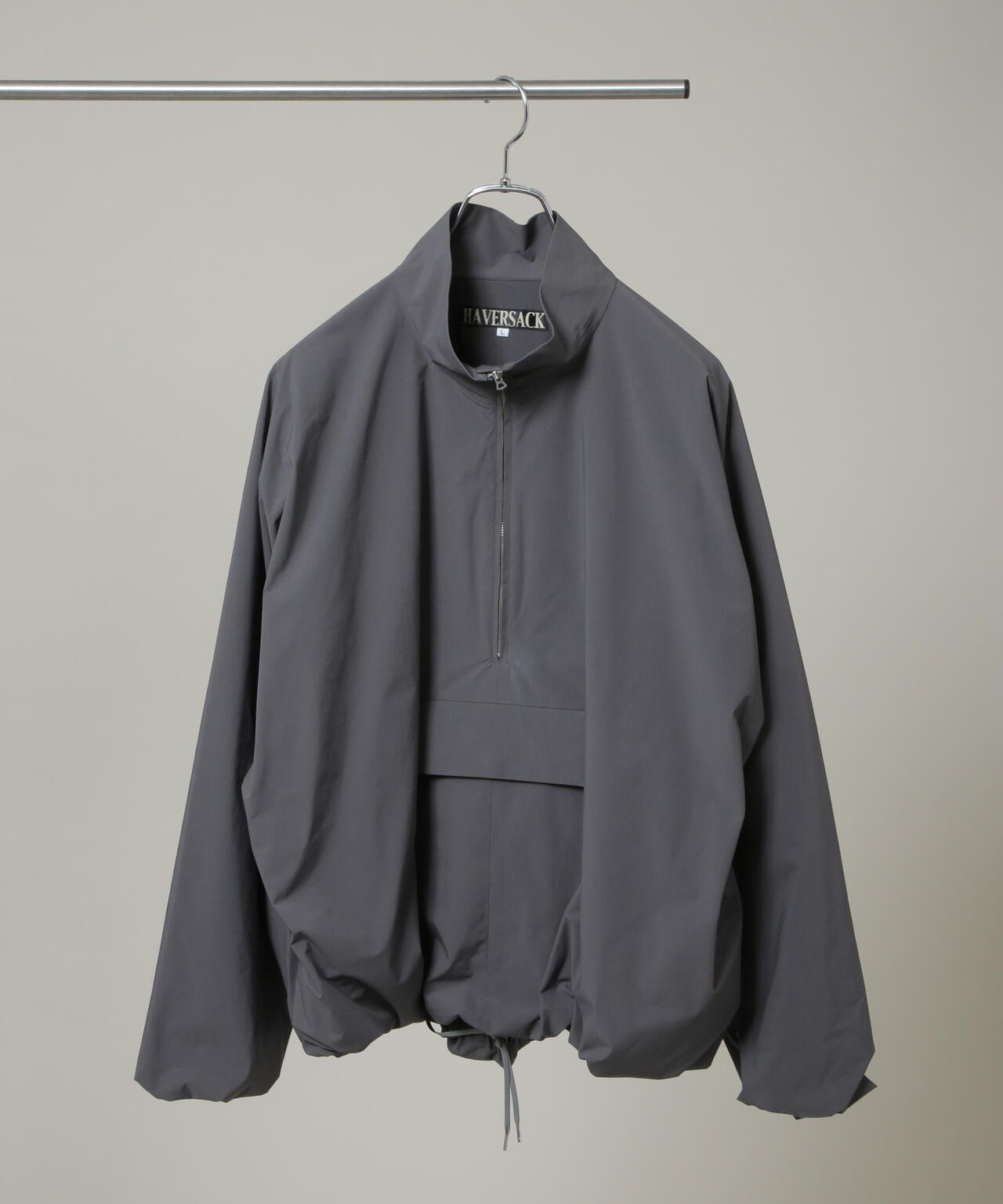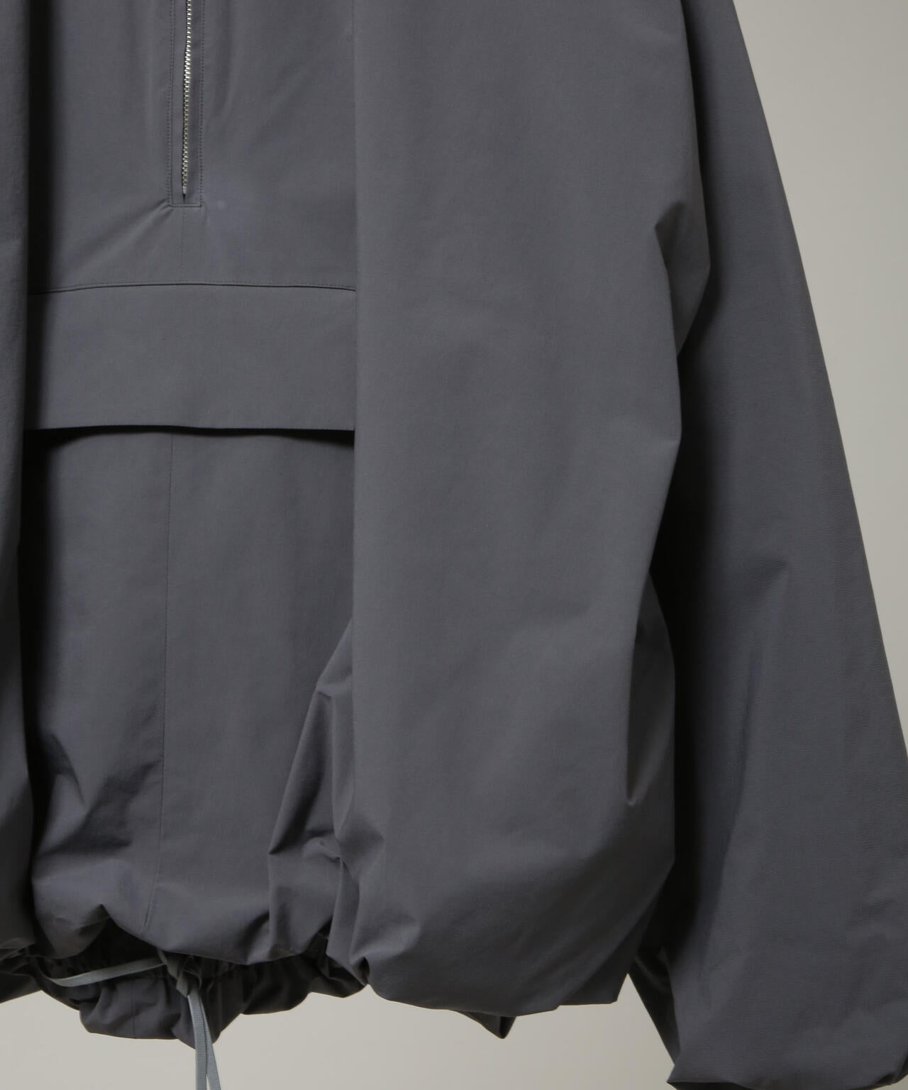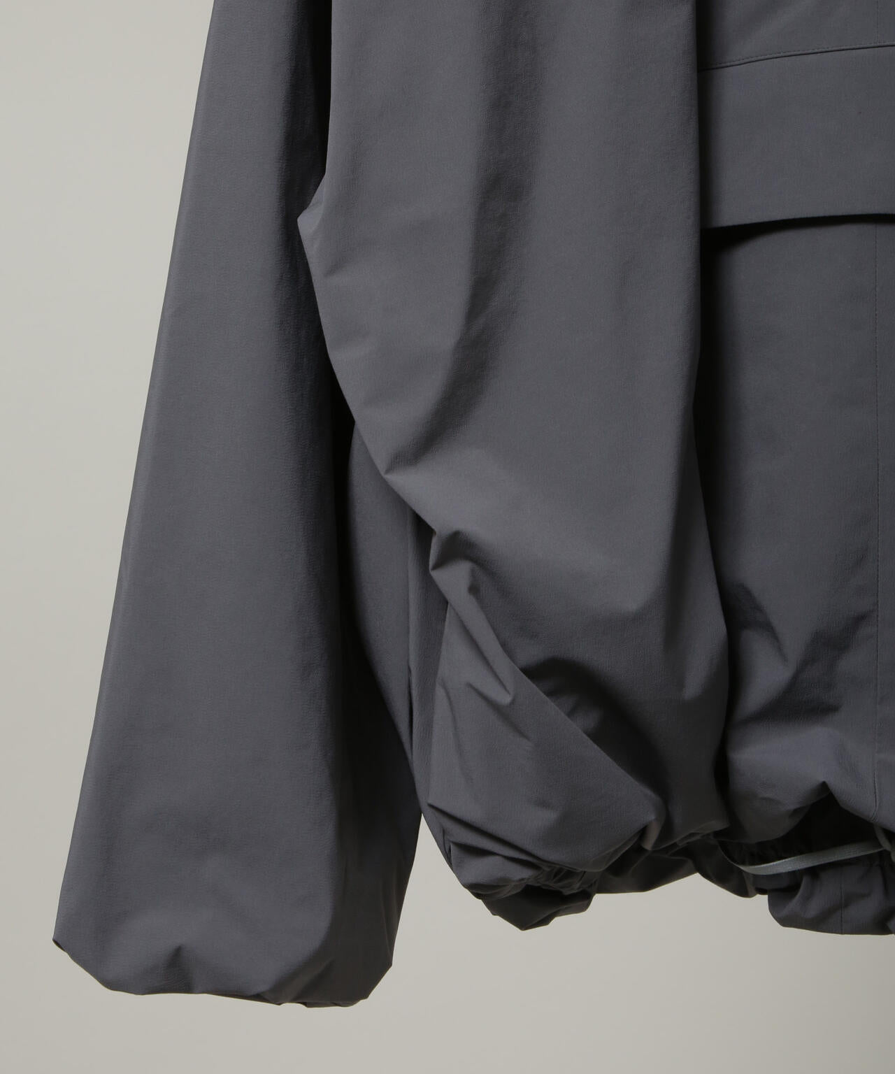 撥水性を兼ね備えた非常に軽くしなやかな2WAYナイロンストレッチを使用した無双仕立てのスタンドカラーZIPブルゾン。袖口と裾口にたっぷりとギャザーを入れ、柔らかくエアリーなボリュームのあるシルエットに仕上げたアイテムです。